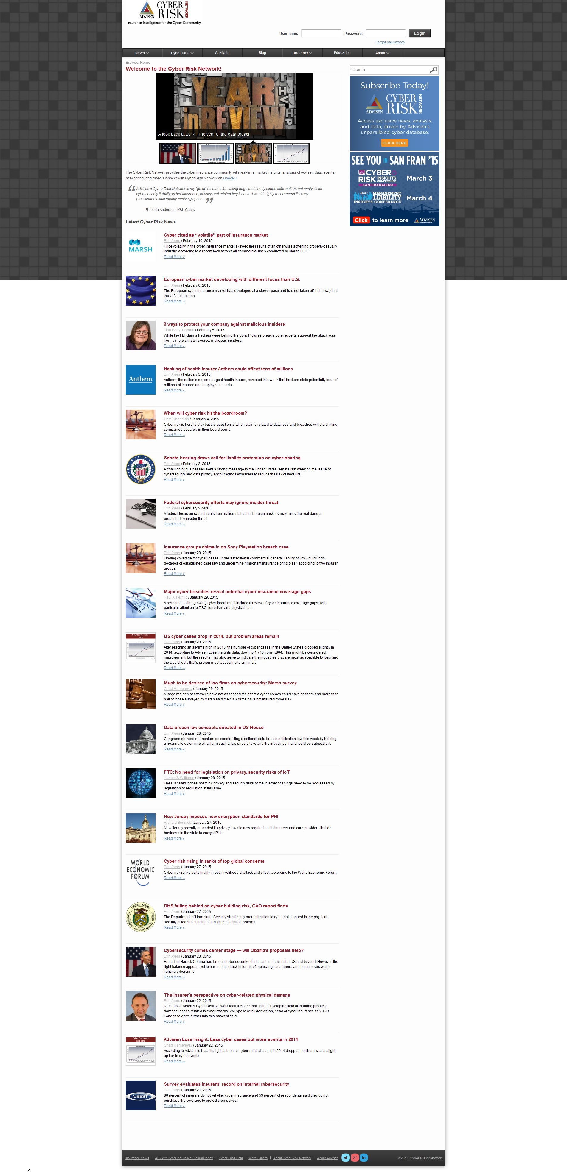 Cyber Risk Network is a subscription product that offers exclusive news, analysis, and data, driven by Advisen’s unparalleled cyber database. The Cyber Risk Network is the definitive authority for anyone involved in or interested in the cyber insurance risk sector.