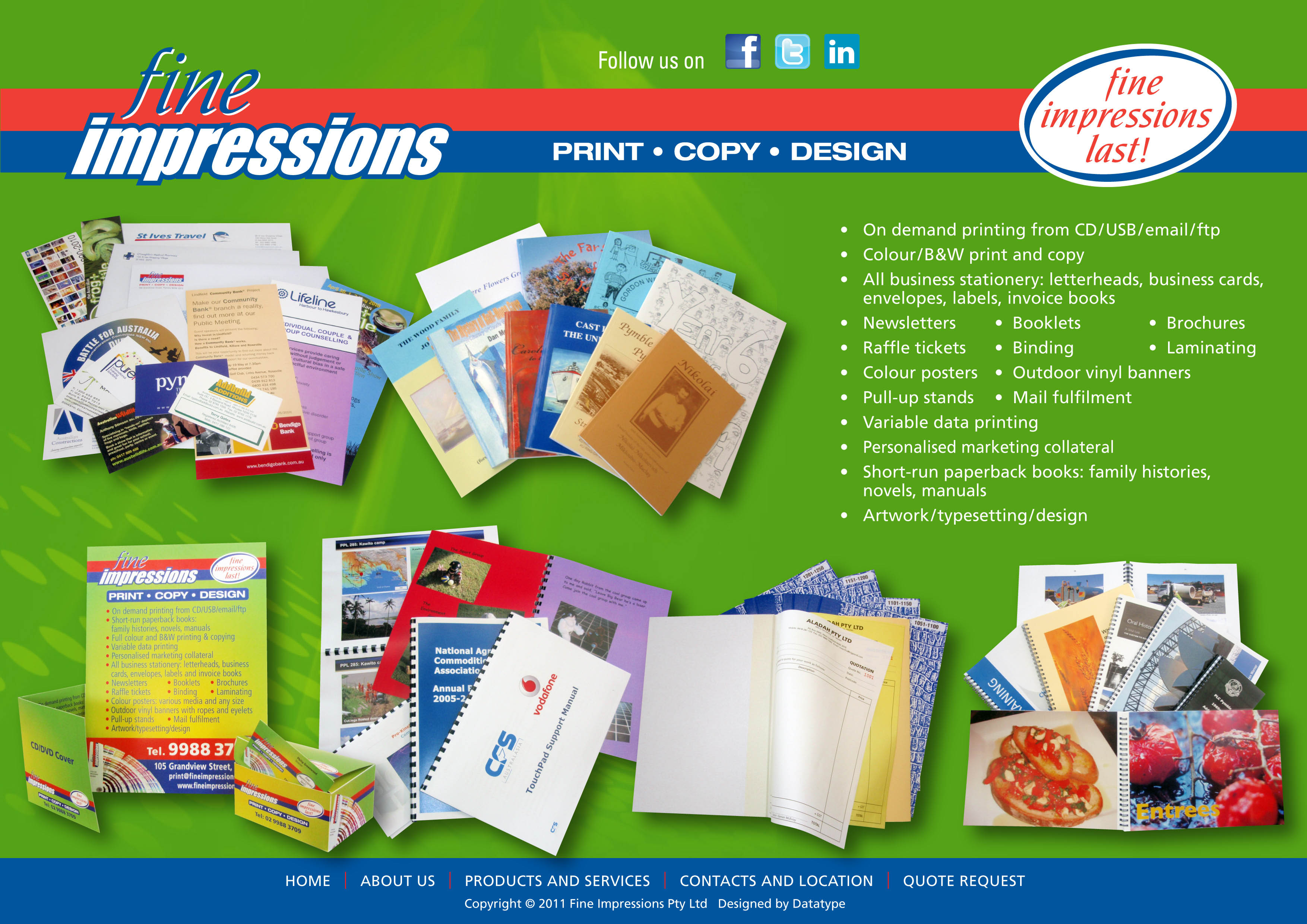 Fine Impressions is a commercial print shop in Pymble, NSW. We are a graphic design service that delivers timely professional printing of documents within your budget.