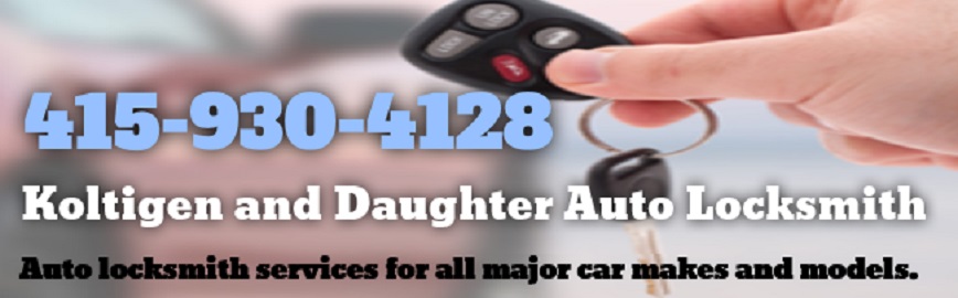 You can count on Koltigen and Daughter Auto Locksmith Koltigen and Daughter Auto Locksmith, is available 24/7 for your auto locksmith needs. Need to get back in your car or need a car key made, even a transponder key in a rush? We are experts at it Bringing San Francisco the best service and rates is our main goal. You can call us at anytime, day and night, even weekends and holidays at 415-930-4128. We specialize in high security locks, install master key systems, install panic hardware, re-keying, safes, security systems, 24/7 service, break-in repairs, cars unlocked, 247 emergency service, homes unlocked, locks re-keyed, peephole installation, radio-dispatched, remove broken keys, safes unlocked, car keys made, work evenings, work weekends, dead-bolts, digital door locks, door locks, gun locks, window bars, window locks, window gates, ignition switch keys, transponder keys, and broken key extractions.