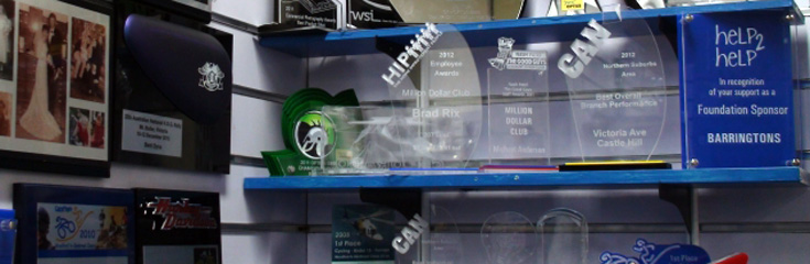 Awards and More provide Corporate Awards, Sports Trophies, promotional Products, name badges, conference accessories.Located in Castle Hill trading zone, our clients include corporates, companies, not for profits and local sporting club.