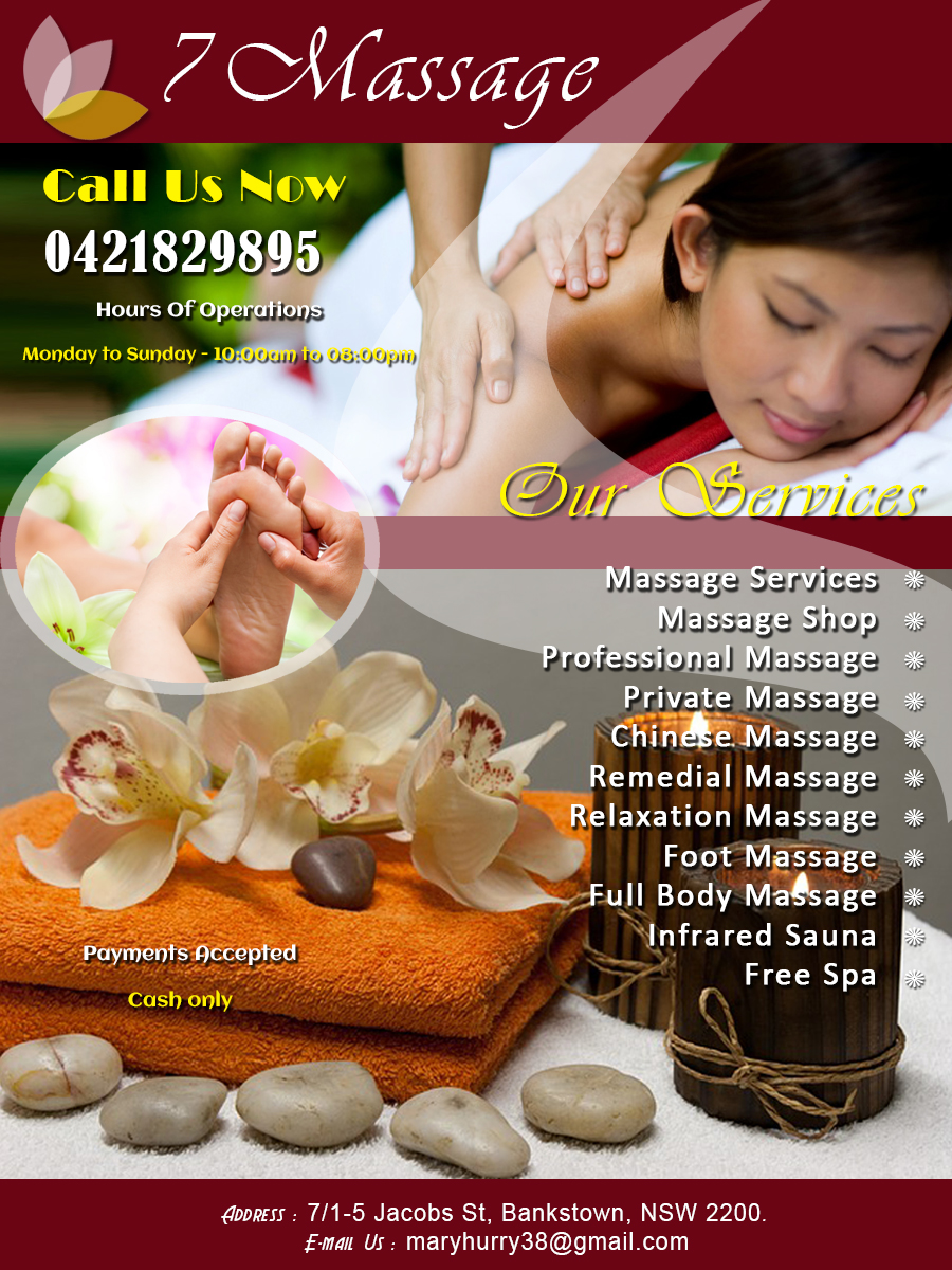 7 Massage is the premier massage shop that brings you the ultimate massage experience. Located in the centre of Bankstown, 7 Massage brings you an unforgettable experience. We provide the most luxurious massage experience to those who long for an intense massage. We provide the best quality full body oil massage service. We select the right masseuses with extraordinary massage skills so that they can provide you the right massage you seek for.