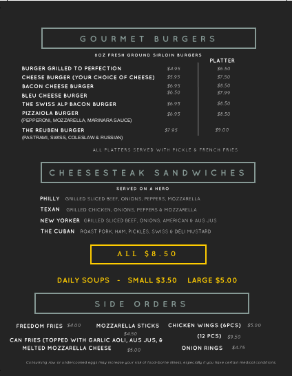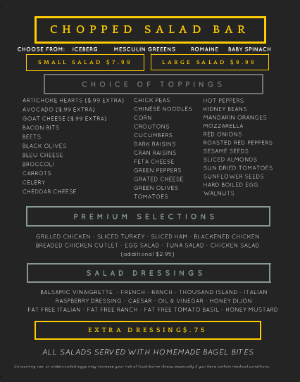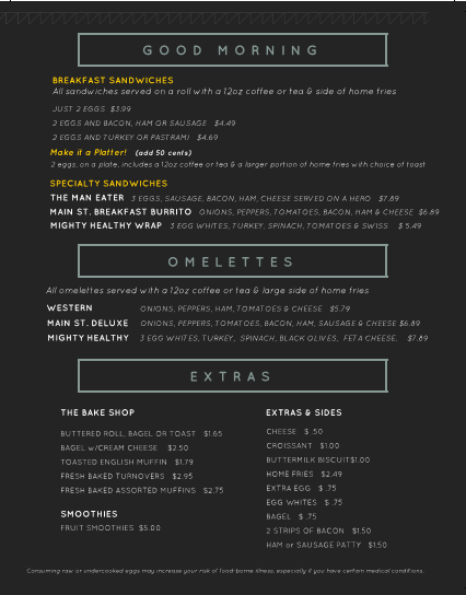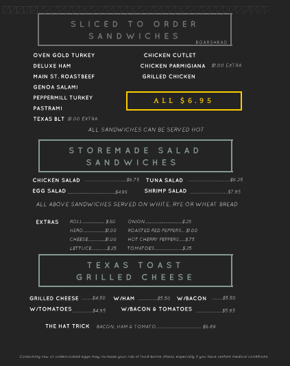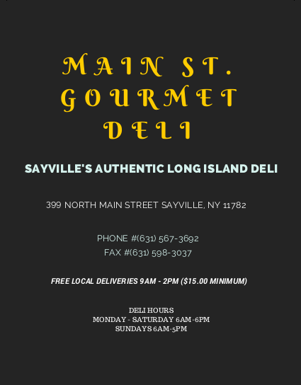 Main Street Gourmet Deli is Sayville’s best new take-out restaurant and convenience store. Our skilled chef, Greg, has over 30 years of experience and prepares the tastiest salads, soups, and take-out entrees in town. Whether you need a quick bite while you’re on-the-go or are looking for something hot and delicious to bring home, Main Street Gourmet Deli is guaranteed to satisfy the whole family.