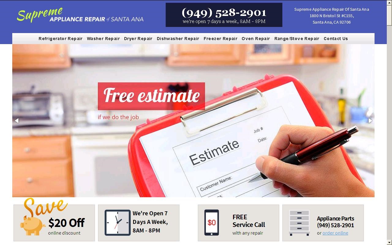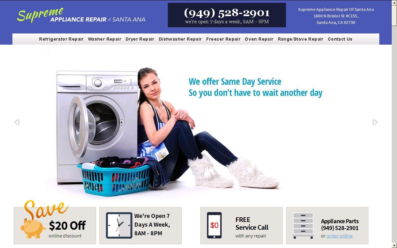 Never hesitate to get your appliance fixed or inspected; our Santa Ana appliance repair specialists will get the job done fast -- and you will only pay for parts and labor! If it is your first repair, do not forget to mention our $20 off discount for new customers! Call (949) 528-2901 to schedule an appointment today!