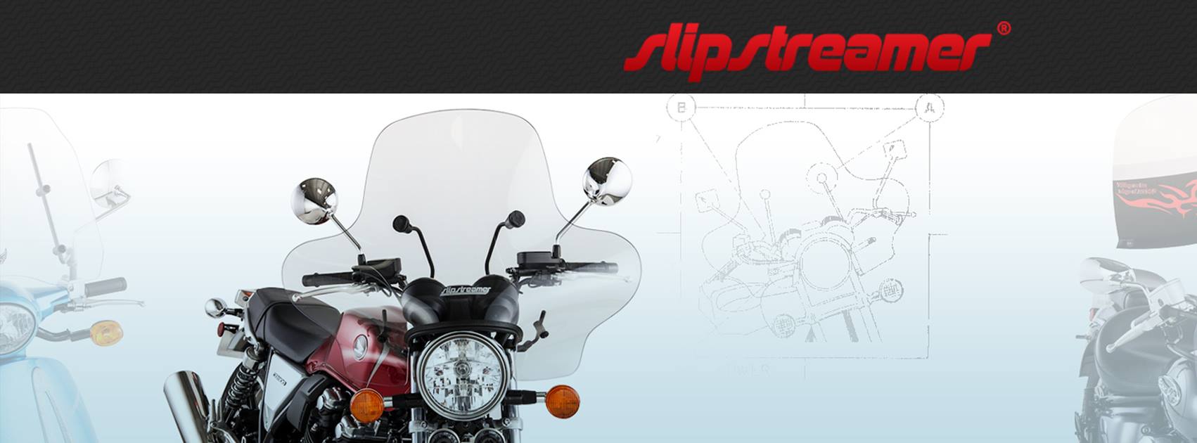 Slipstreamer provides manufacturing quality windscreen installation for ATV, UTV, Scooters and touring, cruisers, sport and universal motorcycles.For more than 40 years, Slipstreamer has been manufacturing, creating and updating quality windshields and products. Our goal has always been to bring superior products to motorcycle enthusiasts.Our company history began in the early 1970s, when Bob Eggerichs founded CF, Inc., the predecessor of Slipstreamer. He set up shop in South St. Paul, Minnesota, and manufactured the first clear acrylic stand-alone windshield.