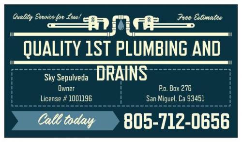 Have you been looking for an affordable, reliable plumber in the Paso Robles area? Look no further than Quality 1st Plumbing and Drains, the best choice for a Paso Robles emergency plumbing services! We are a locally owned and operated business offering expert plumbing, troubleshooting, and repair services to all of SLO County and beyond.