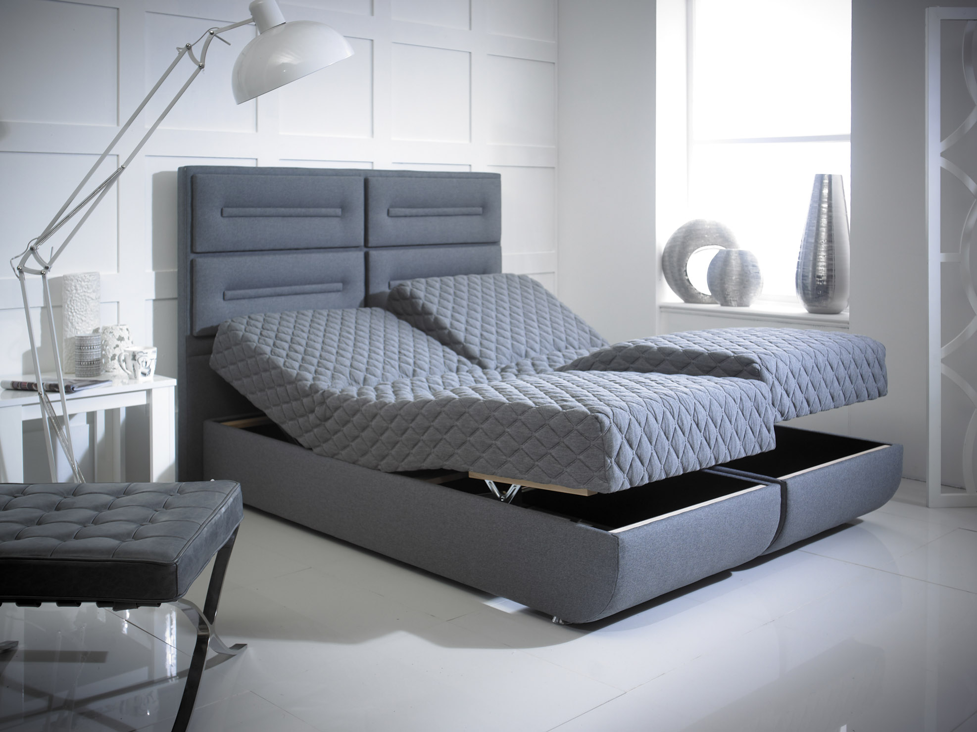 Explore our range of bespoke beds from modern design to traditional styles, accommodating everybody's tastes. Our unique new range of adjustable motion beds, combine the ultimate in comfort and style with the latest technological needs. Why not browse through our luxurious mattresses, orthopaedic, pocket sprung, memory foam just to name a few to find the perfect comfort for you.