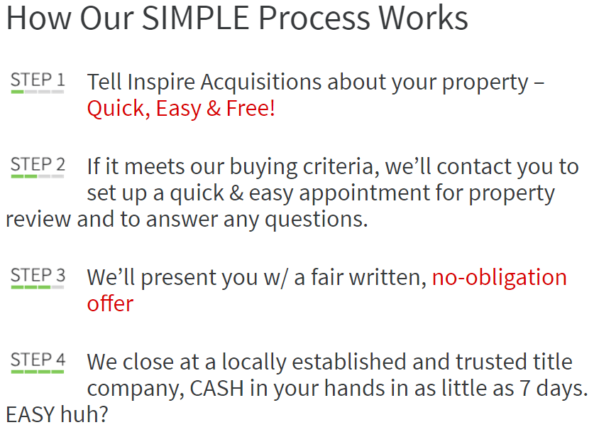 Inspire Acquisitions is a real estate solutions company based out of Dallas, Texas. We're an experienced family owned & operated business and focus on helping homeowners like you find creative solutions for your problem whether you're going through a foreclosure, costly repairs, can't sell your property, or just need to sell their house fast for all sorts of reasons. We can show you how to sell your house fast.