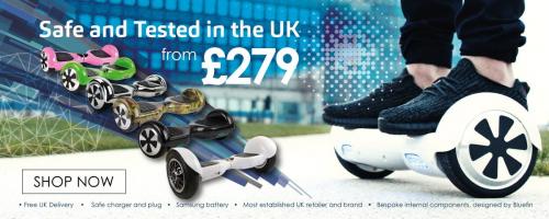 Bluefin Trading Ltd are certified by UK test centres and are fully compliant to all UK and EU regulations for all hoverboards sold. We are one of the only companies in the UK who can confirm the batteries and chargers are 100% safe and compliant to BSI 1363. We have a range of hoverboards to choose from: 6.5" Classic, 8″ Bluetooth, 10″ Cobra and 7.5″ StuntSweg.