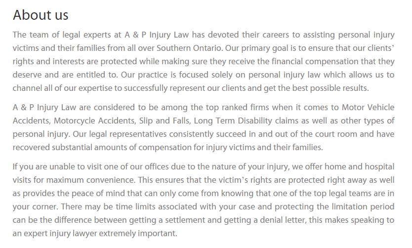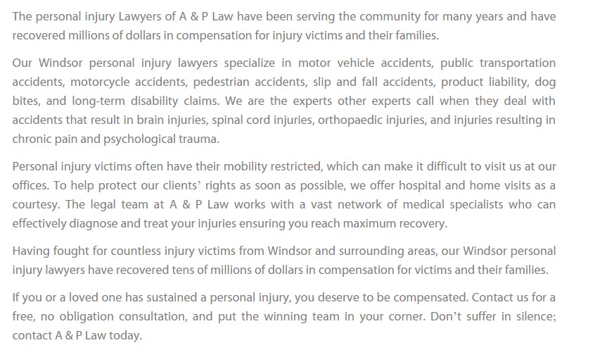 EBIL Personal Injury Lawyer in Windsor has devoted their careers to assisting personal injury victims and their families. Our Windsor personal injury lawyers specialize in motor vehicle accidents, public transportation accidents, motorcycle accidents, pedestrian accidents, slip and fall accidents, product liability, dog bites, and long-term disability claims.