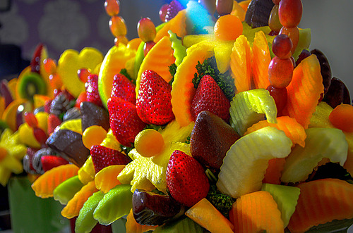 We sell fresh fruit bouquets and chocolate covered strawberries with free delivery