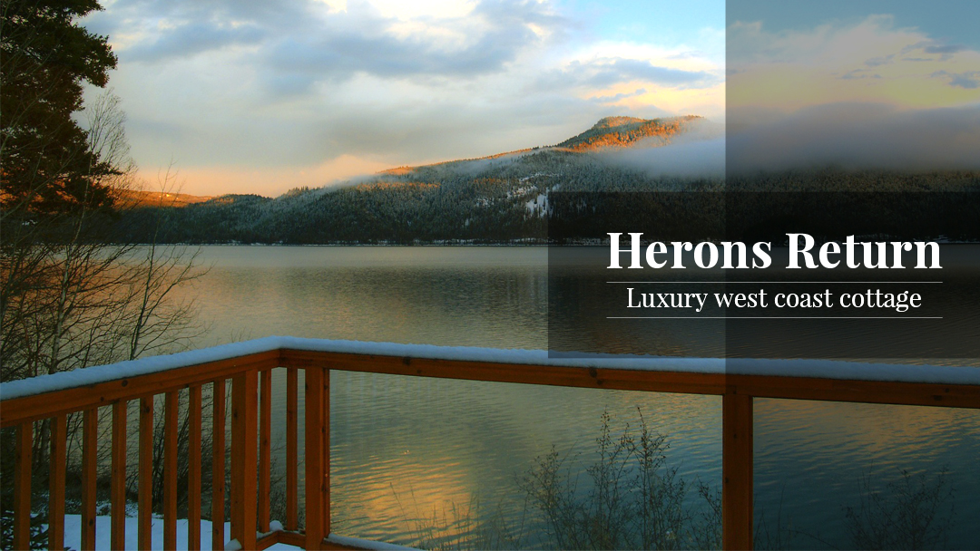 Herons Return is a traditional timber frame cottage, with two queen bedrooms, and one with 2 twin beds. We have a fourth bedroom with a bunkbed for children. Perfect for up to 3 couples, or a family. A fully equipped gourmet kitchen, large living room with 180 degree views of the mountains, forest and cove, a large covered deck and a sundeck with a four person hot tub overlooking the cove are exclusively yours during your stay.