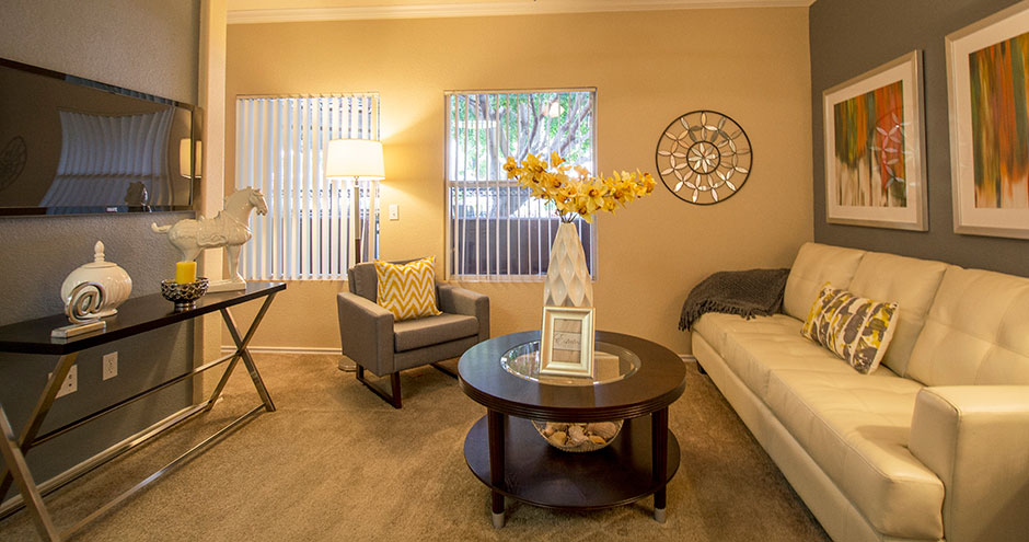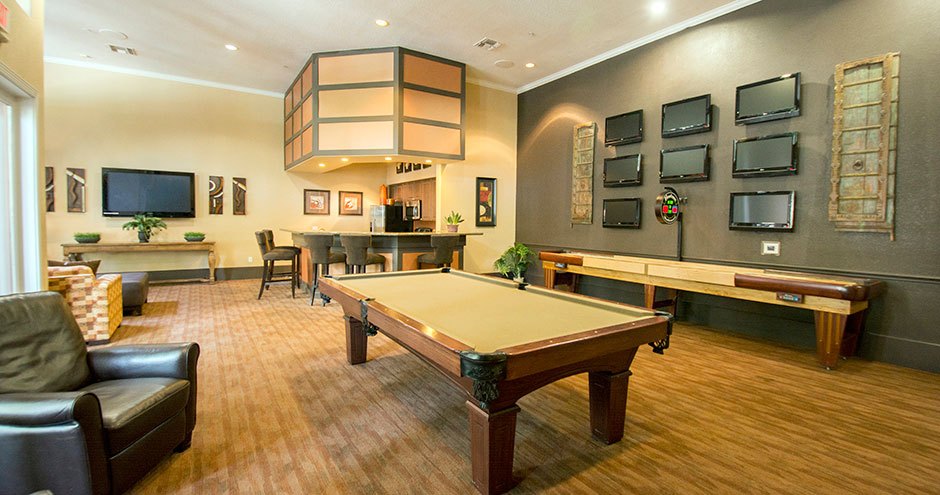 Washers and dryers, microwaves, garden tubs and oversized closets are in all of the one, two and three bedroom floor plans at Estates on Maryland. Homes also feature private patios or balconies, extra storage, crown molding and the availability of private garages.