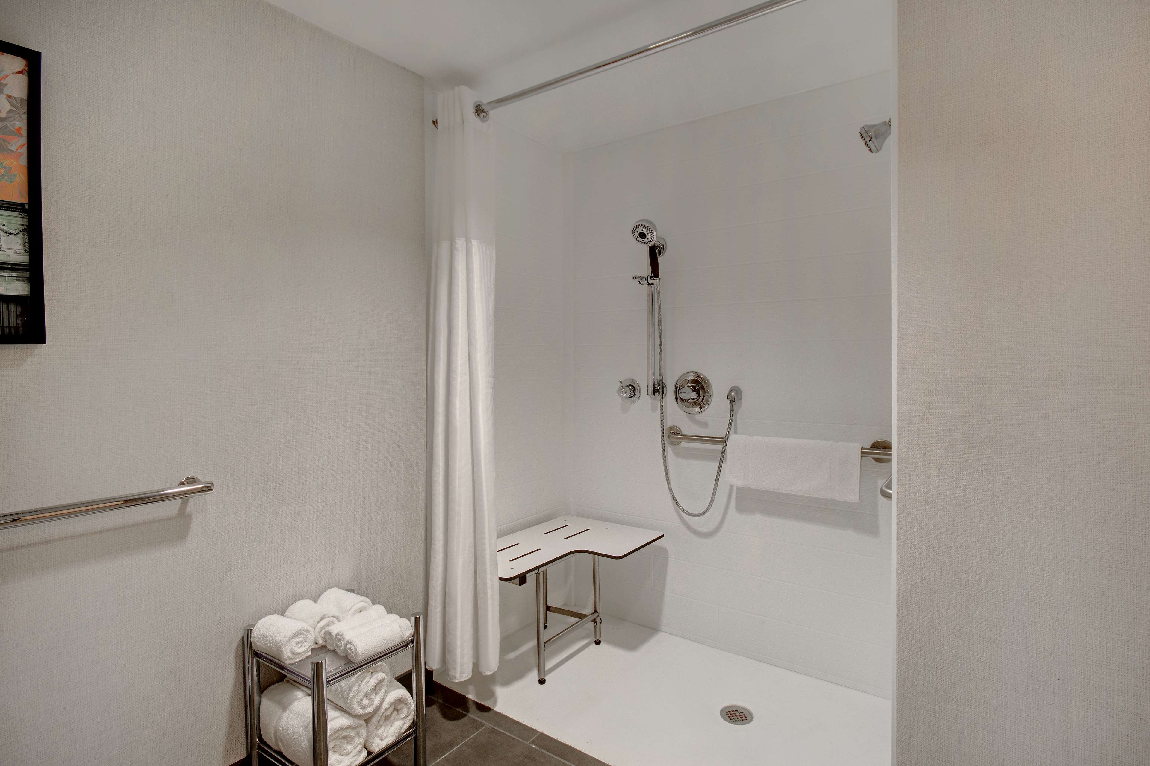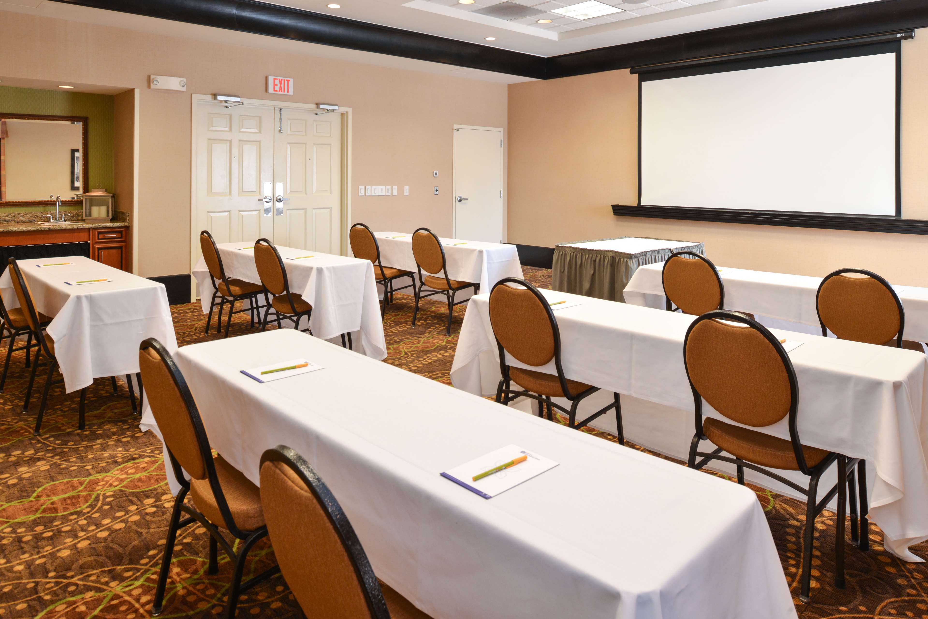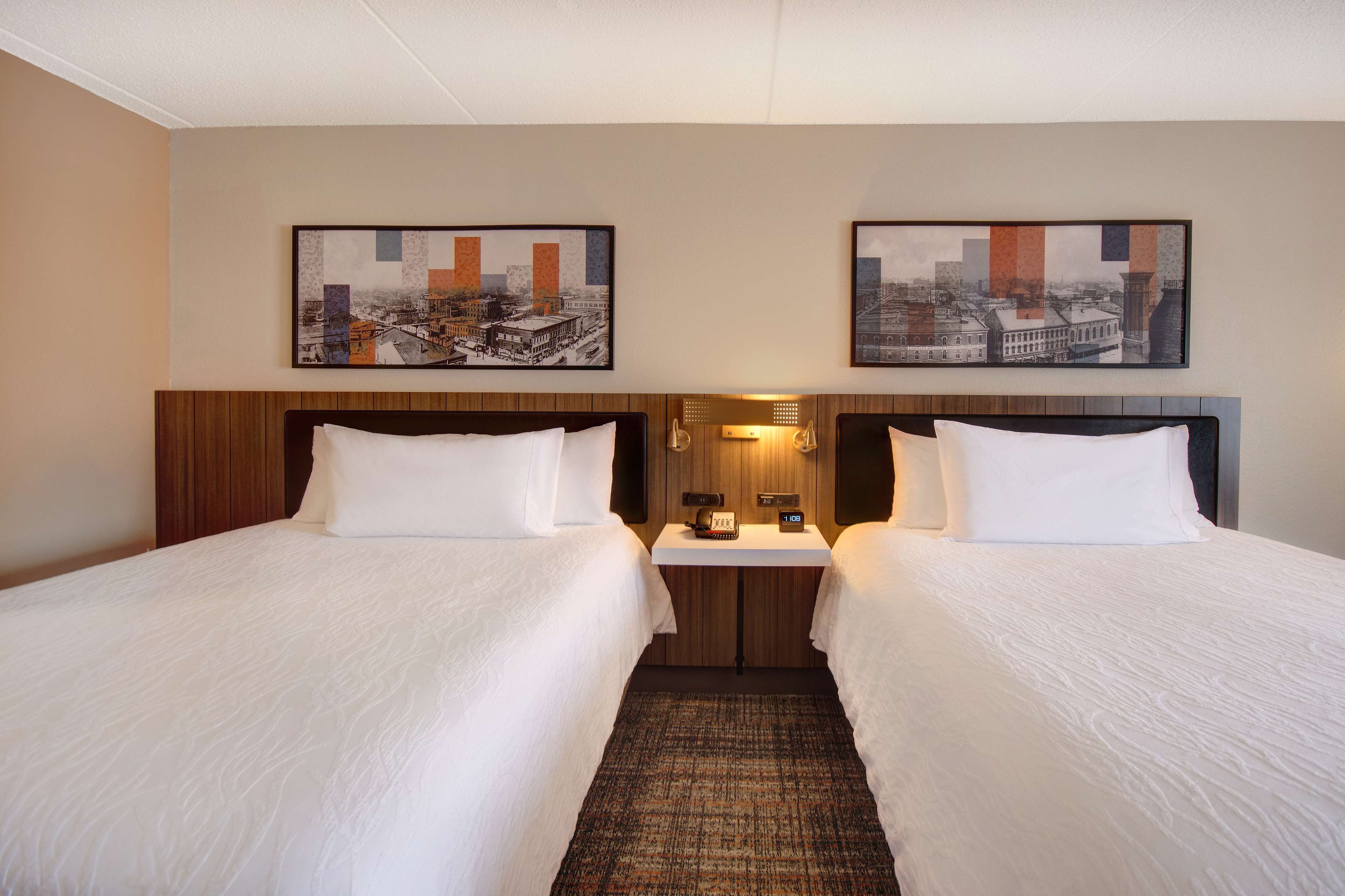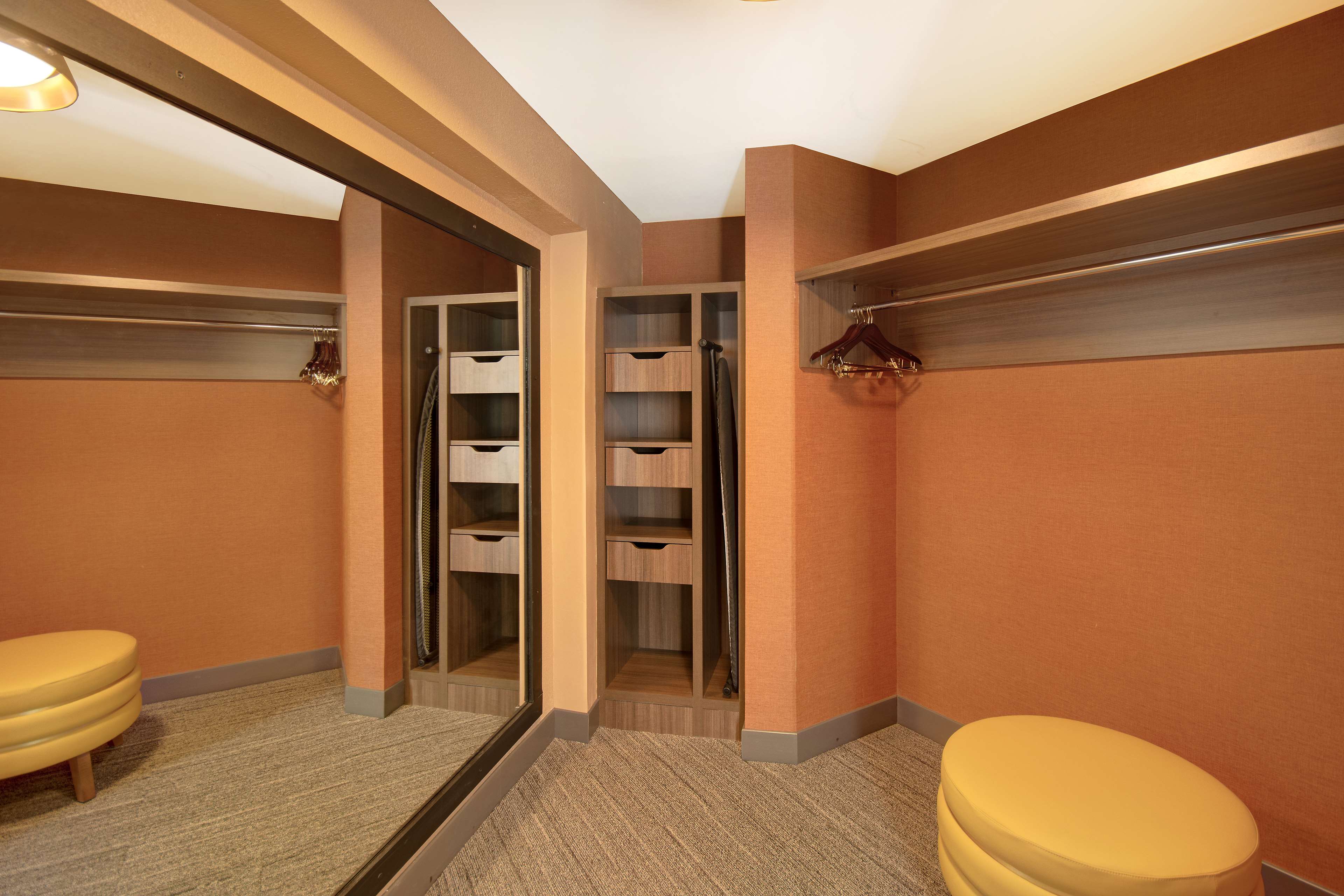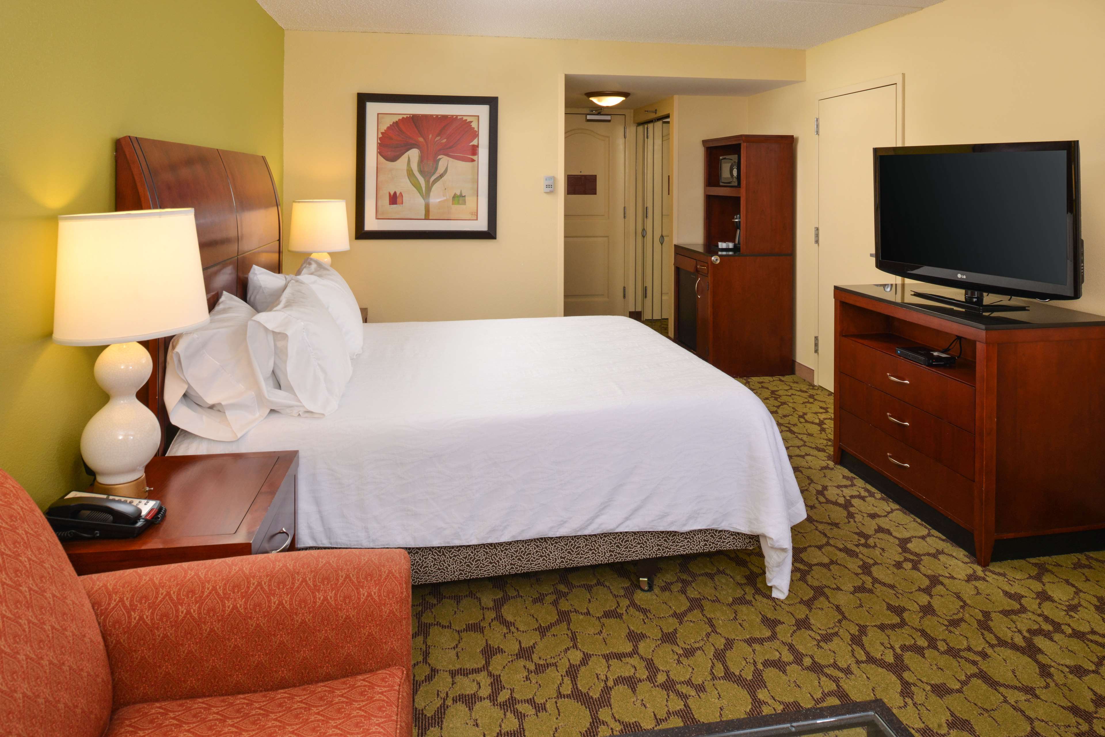The six story building houses 109 guestrooms including 4 suites, each furnished with a convenience center housing a refrigerator, microwave, and coffeemaker. Spacious work desks with ergonomic chair, phone, dataport, and voicemail also have complimentary hi-speed internet access are conveniently located at desk-level for easy access. The hotel also features remote printing from guestroom to business center. Irons, ironing boards, and hair dryers are standard in all rooms.