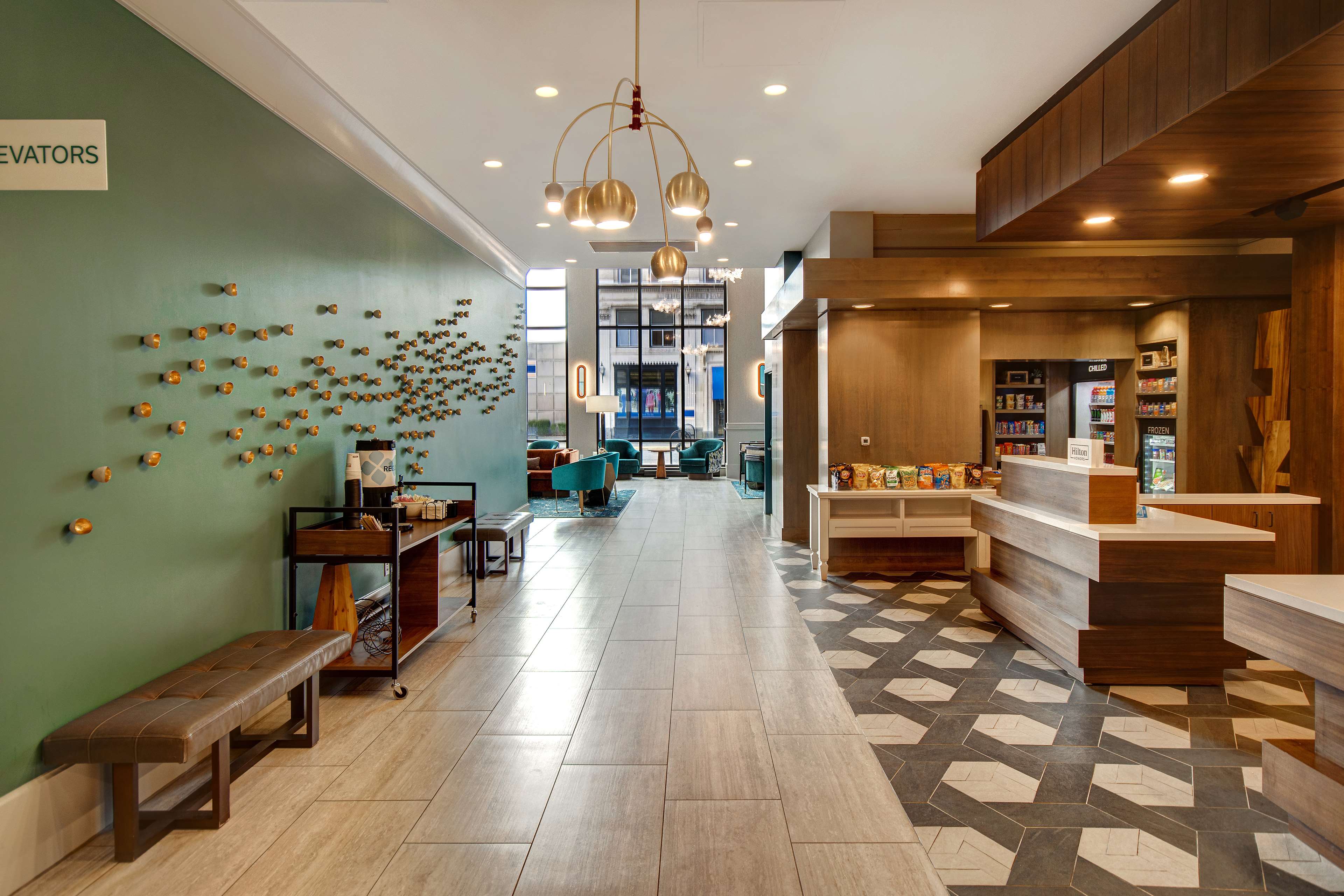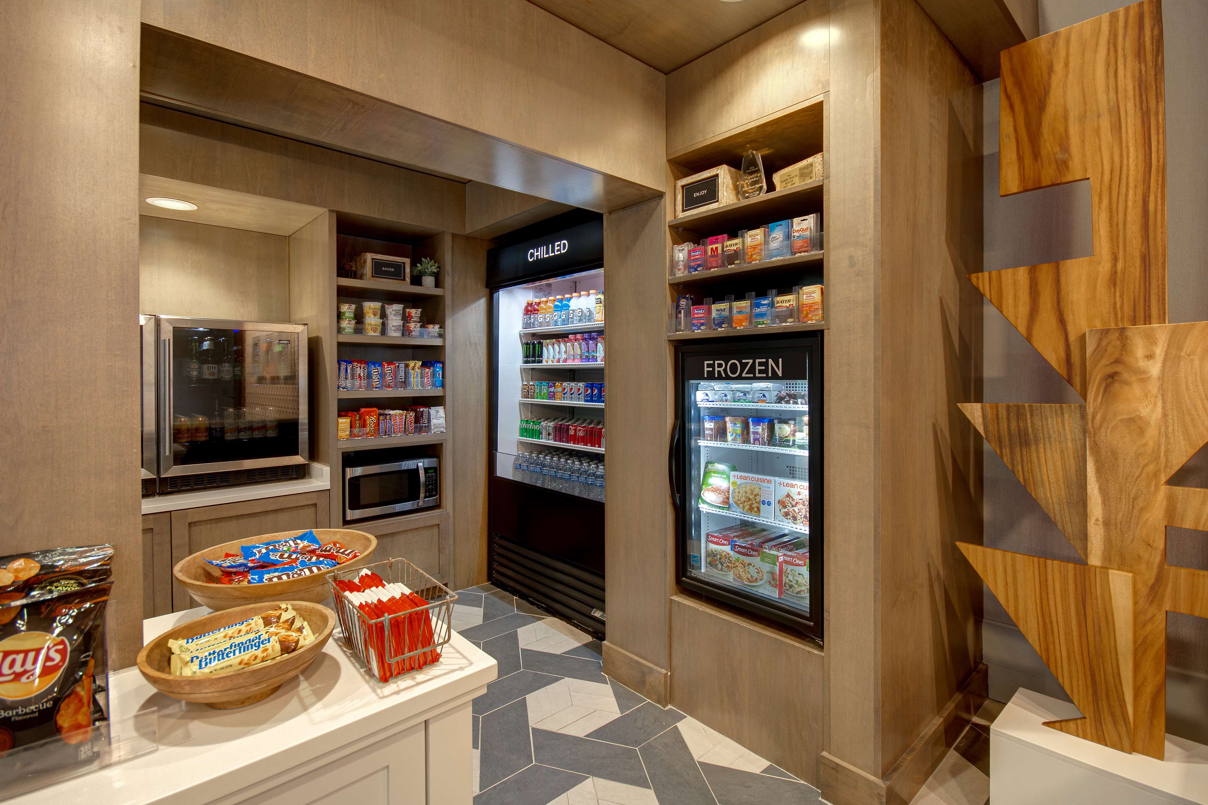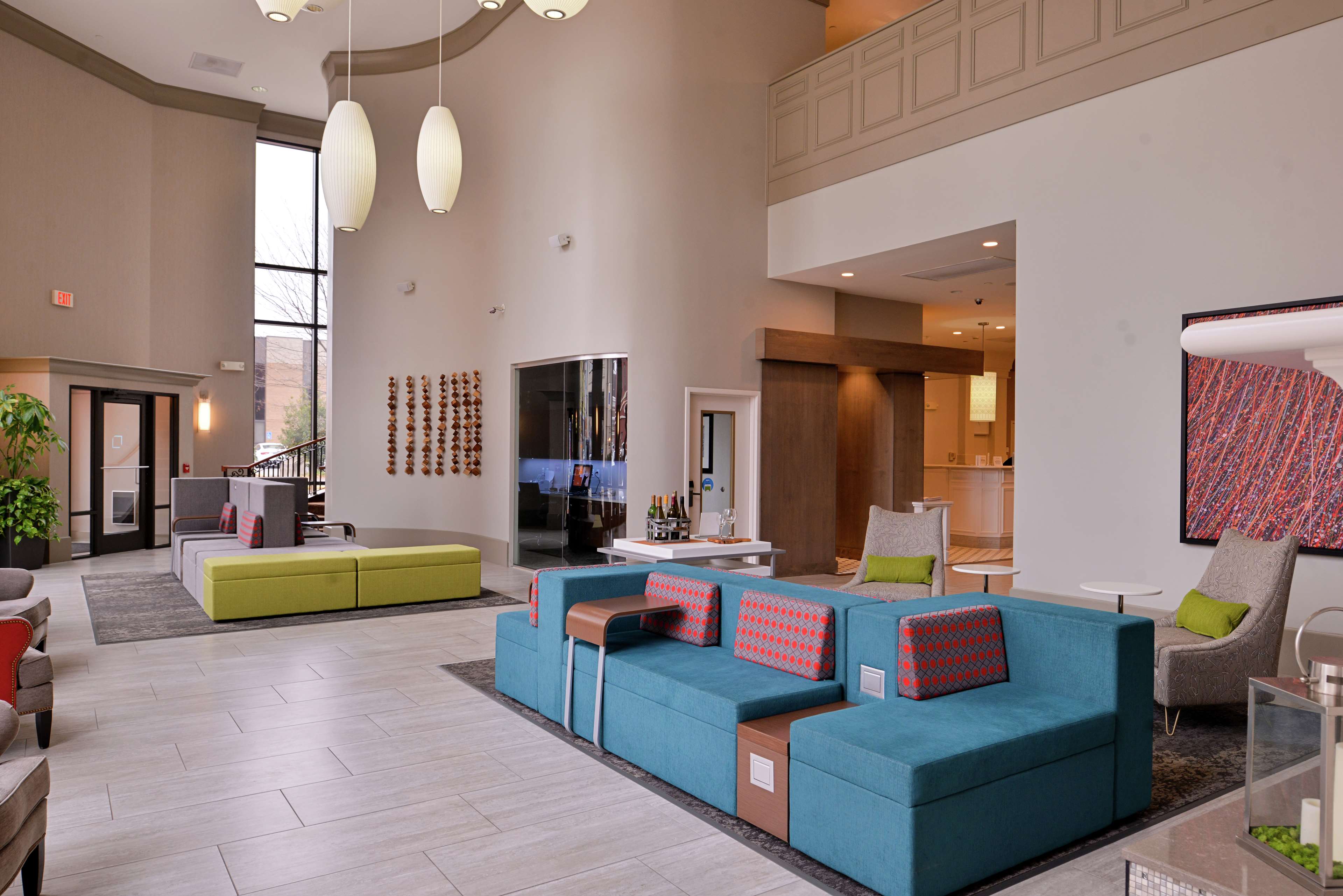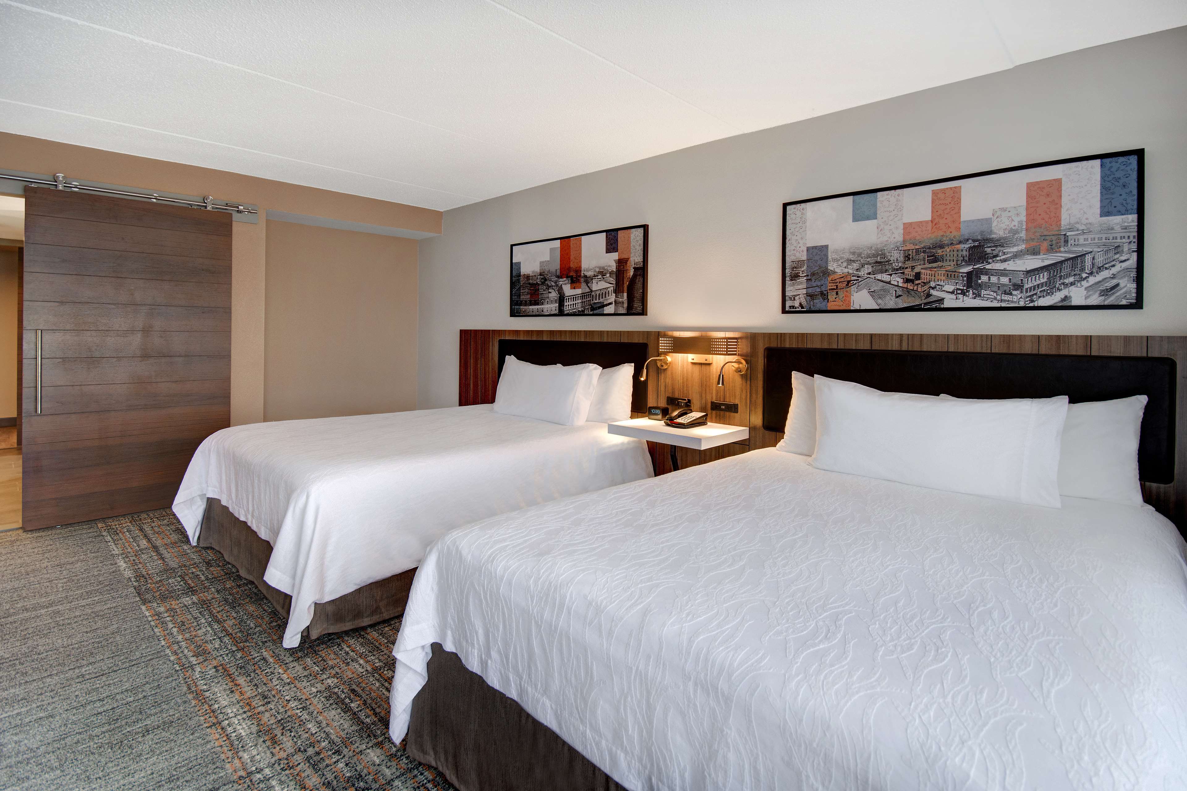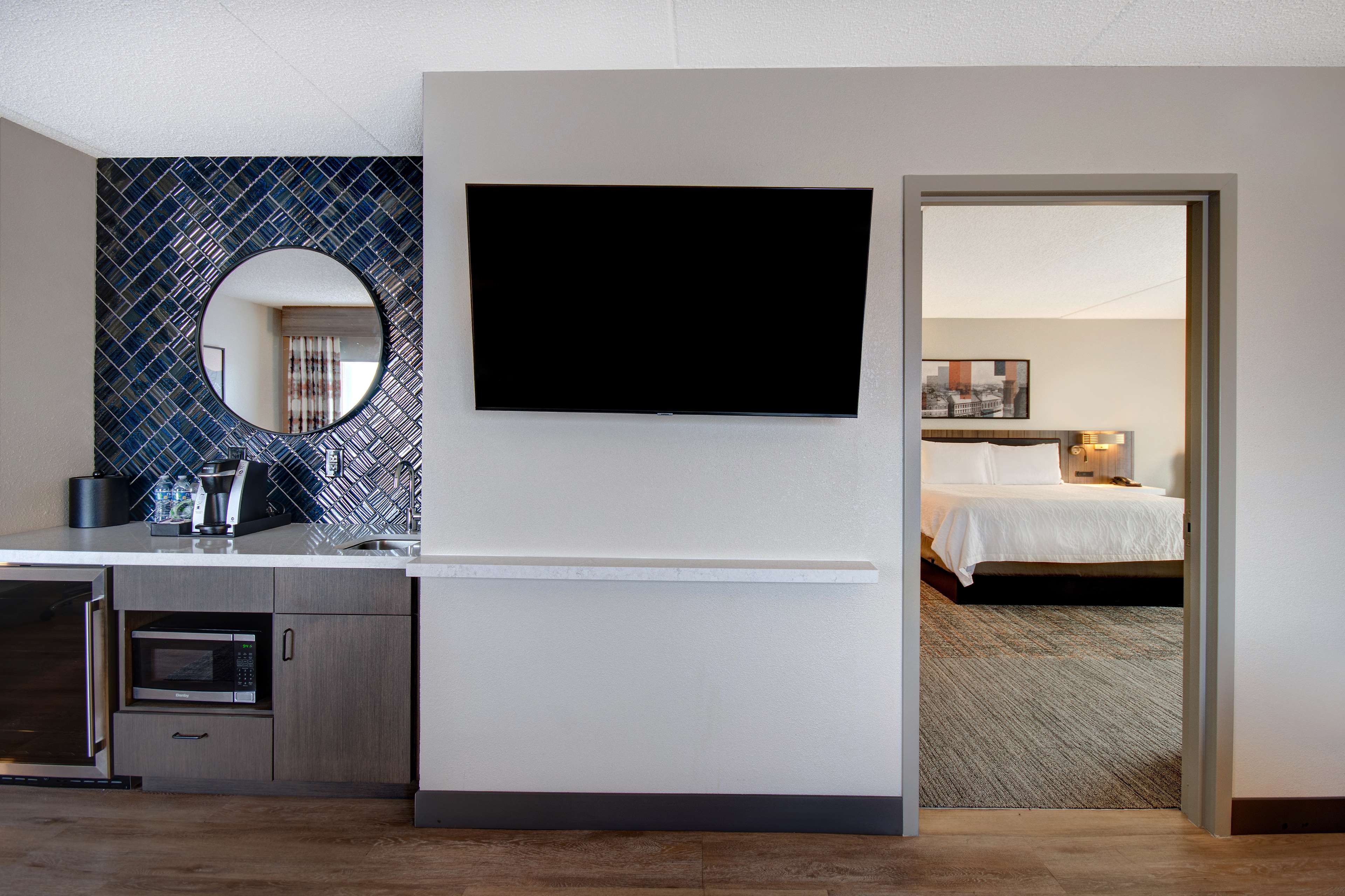 The six story building houses 109 guestrooms including 4 suites, each furnished with a convenience center housing a refrigerator, microwave, and coffeemaker. Spacious work desks with ergonomic chair, phone, dataport, and voicemail also have complimentary hi-speed internet access are conveniently located at desk-level for easy access. The hotel also features remote printing from guestroom to business center. Irons, ironing boards, and hair dryers are standard in all rooms.
