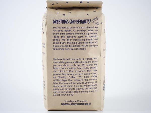 Our continuing mission is to explore strange new coffees, to seek out new beans and brew methods, to boldly go where no coffeenaut has gone before. We will continue to go above and beyond to get you delicious coffee with a boost and always in the right way for planet earth. Starship Coffee's purpose is to go "Above and Beyond" in providing the highest quality, small-batch coffee in the Universe. Our high caffeine coffees are meticulously chosen and are always fair trade. Our coffee bags and green coffee sourcing processes always put earth first. If our freshly roasted coffee doesn't ignite your taste buds we offer free exchanges and like all starships, we offer light speed service. Go forth and explore #coffeenauts!
