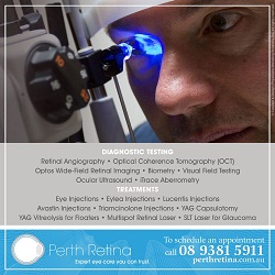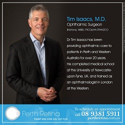 Perth Retina is an ophthalmology practice for the diagnosis and treatment of eye diseases affecting the retina, vitreous and macula. Our specialist Dr Timothy Isaacs is a highly trained Ophthalmologist specialising in the diagnosis and management of disorders of the retina, vitreous and macula, and intraocular tumours including uveal. Located in West Leederville, Australia, we are a tertiary referral centre where many patients with complex retinal conditions are referred for expert opinion and treatment.