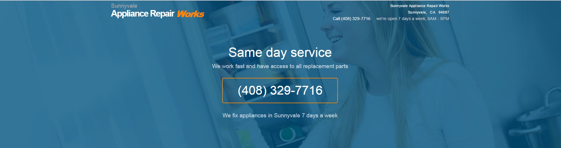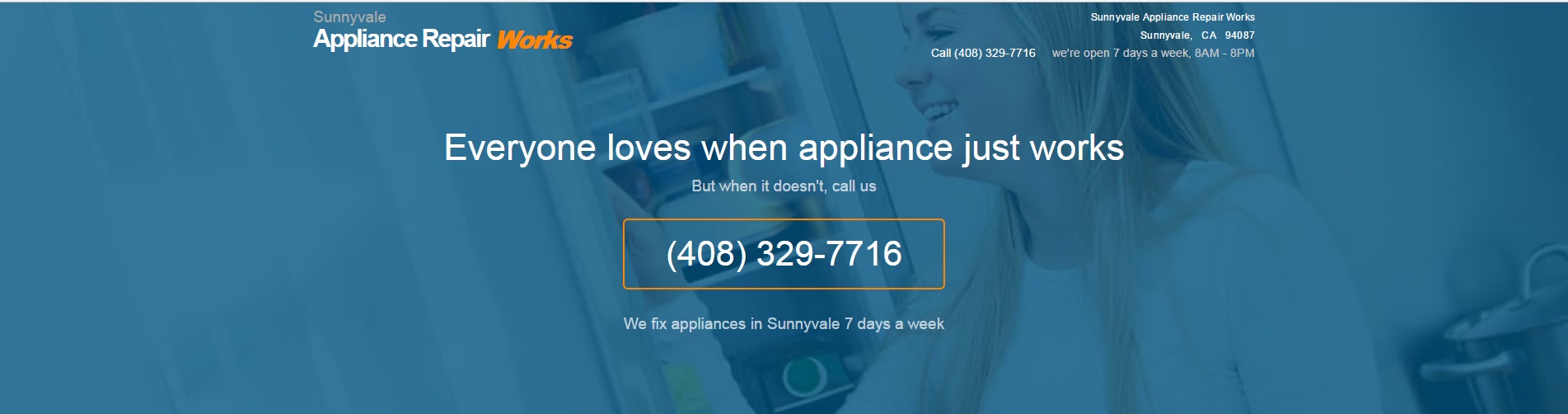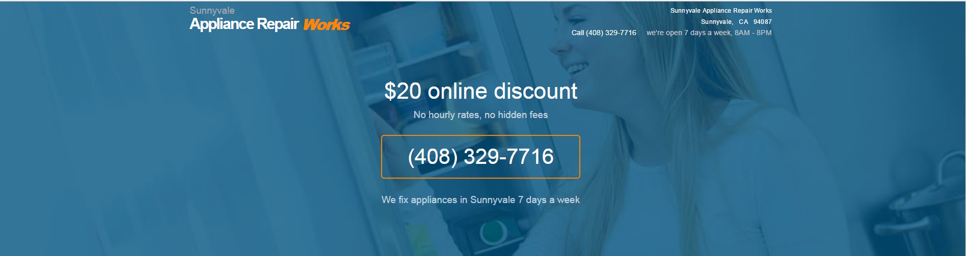 Fix your appliance right away with our emergency Sunnyvale, CA appliance repair services. Pick up and dial (408) 329-7716 ... reference our $20 discount too!