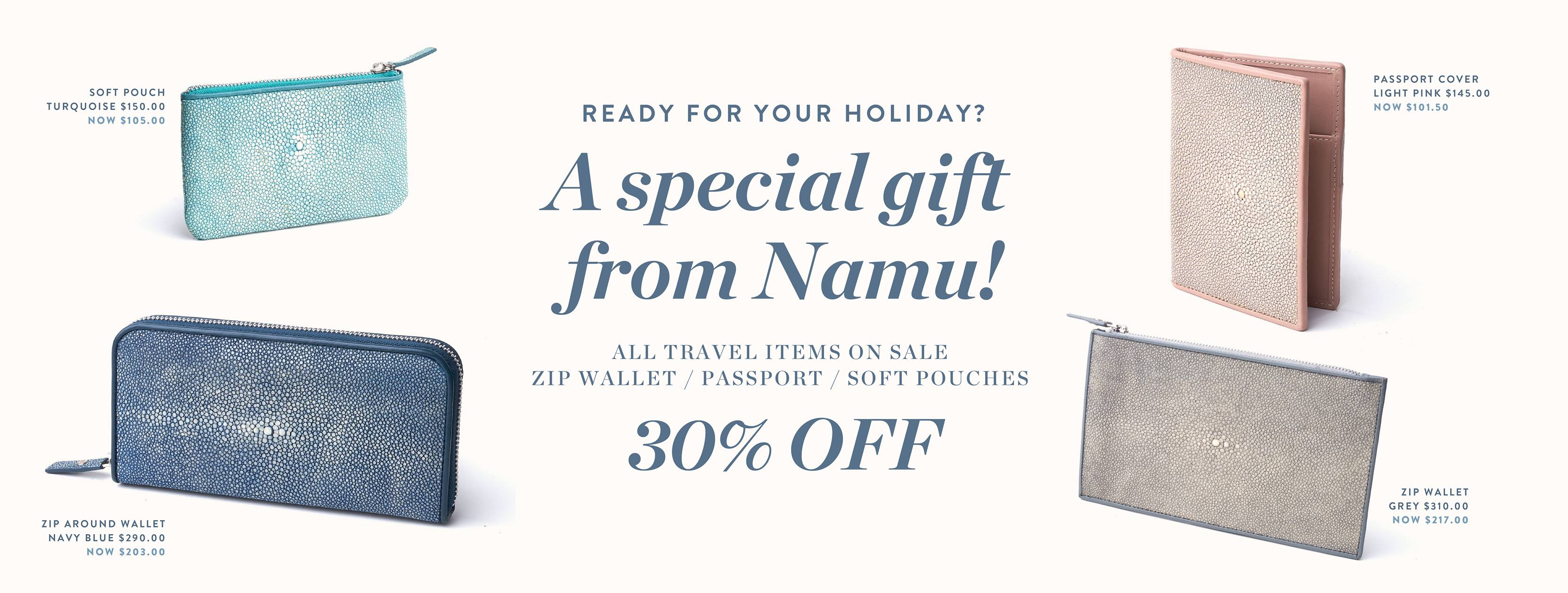 The NAMU Resortwear and Stingray Collection includes timeless Bags and Accessories created in the most soft and luxurious shagreen skin