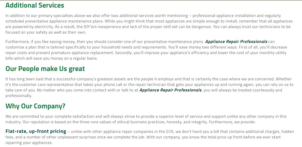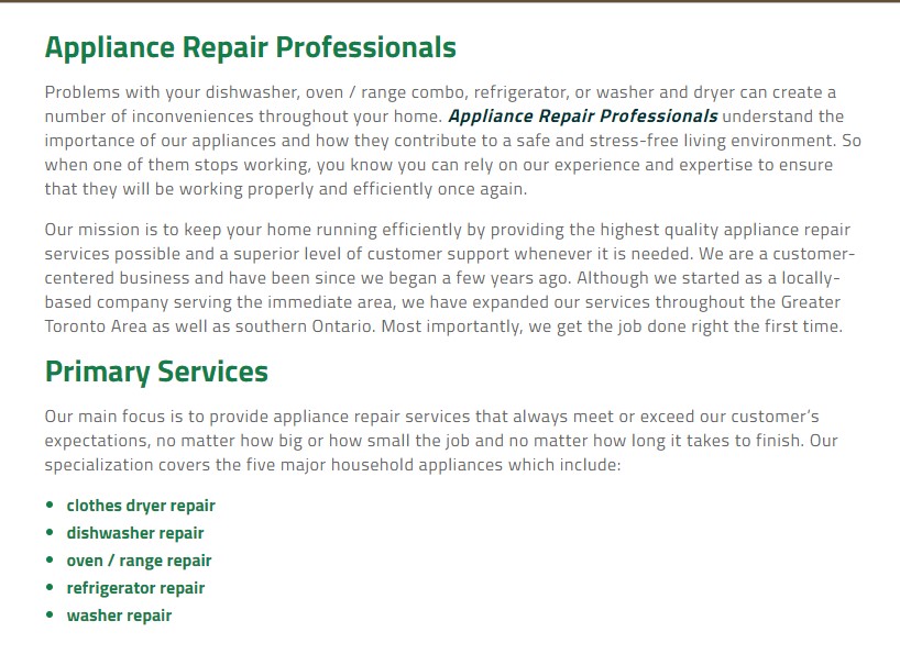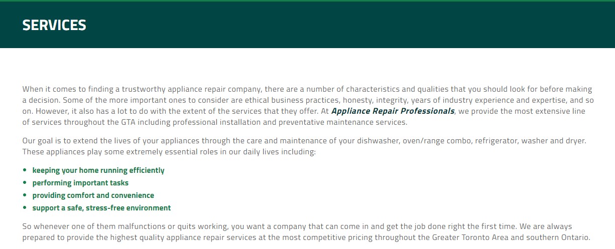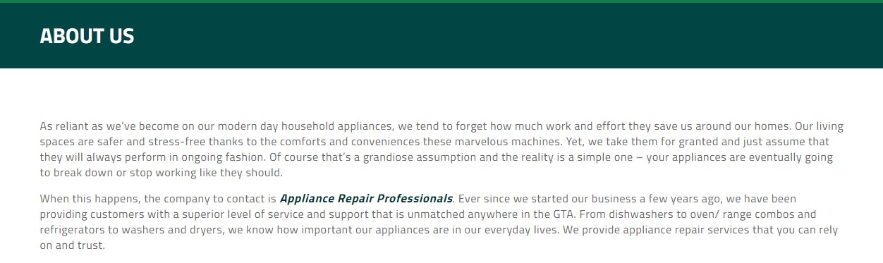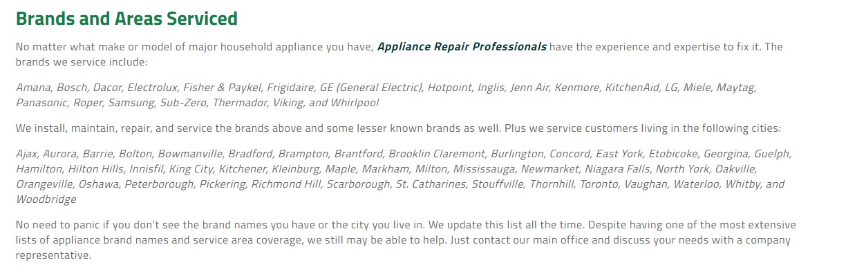 Appliance Repair Professionals in Georgina is dedicated to delivering the highest quality appliance installation, maintenance, and repair services at the most cost-effective pricing throughout the Greater Georgina Area and southern Ontario. You’ll benefit from the experience and expertise that our repair technicians bring with them to the job. They are factory certified and licensed as well as fully bonded and insured so you’ll have peace of mind knowing that the person working on your appliance is careful and trustworthy.