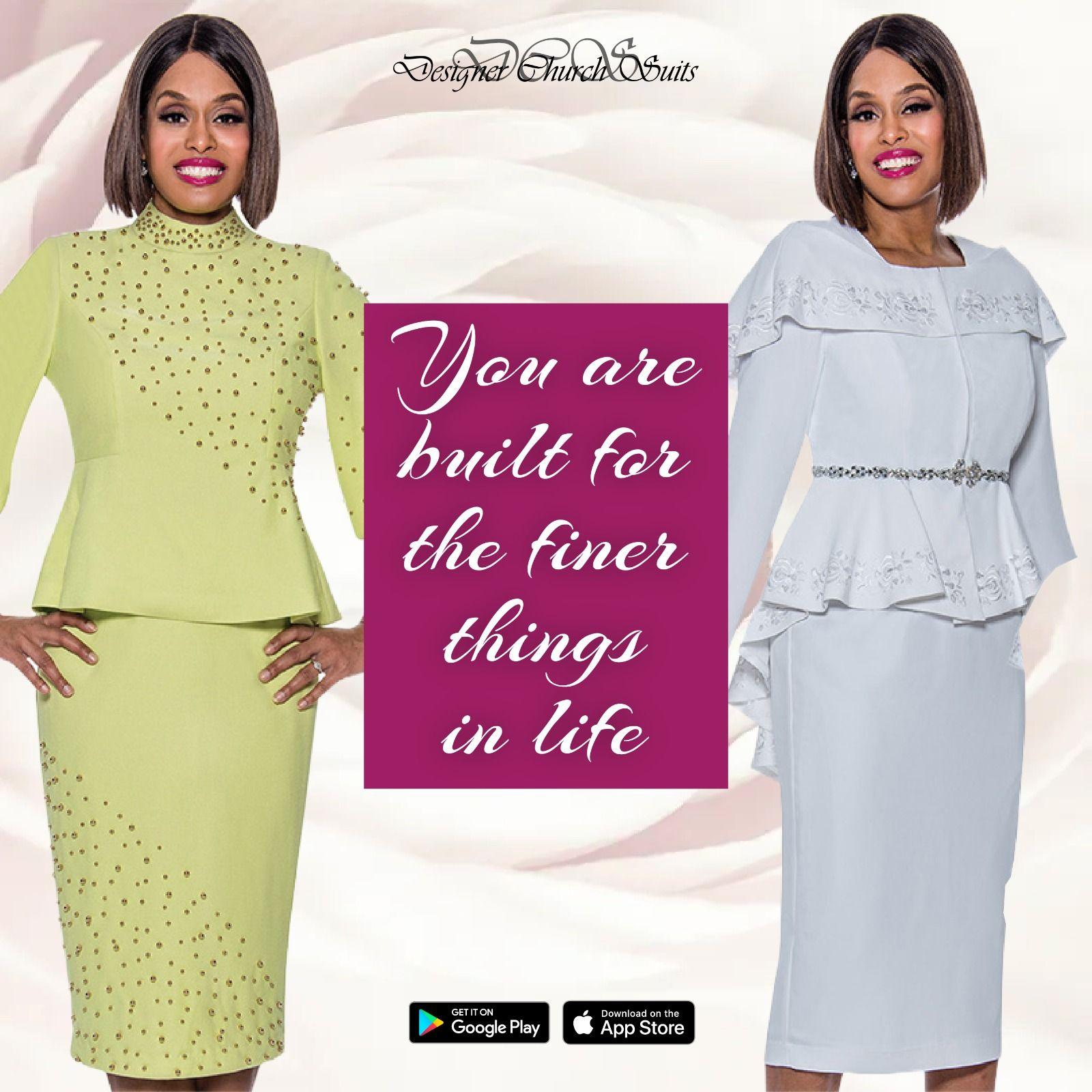Welcome to Designer Church Suits, the premier destination for stylish and elegant church suits, church dresses and church hats from top designers. Our beautiful collection offers a great range of top-quality designer suits with modern trends, made to fit everyone's taste and budget. Explore our wide range of high-quality church suits tailored for every church occasion. Look and feel your best, knowing that you are dressed in the finest apparel.