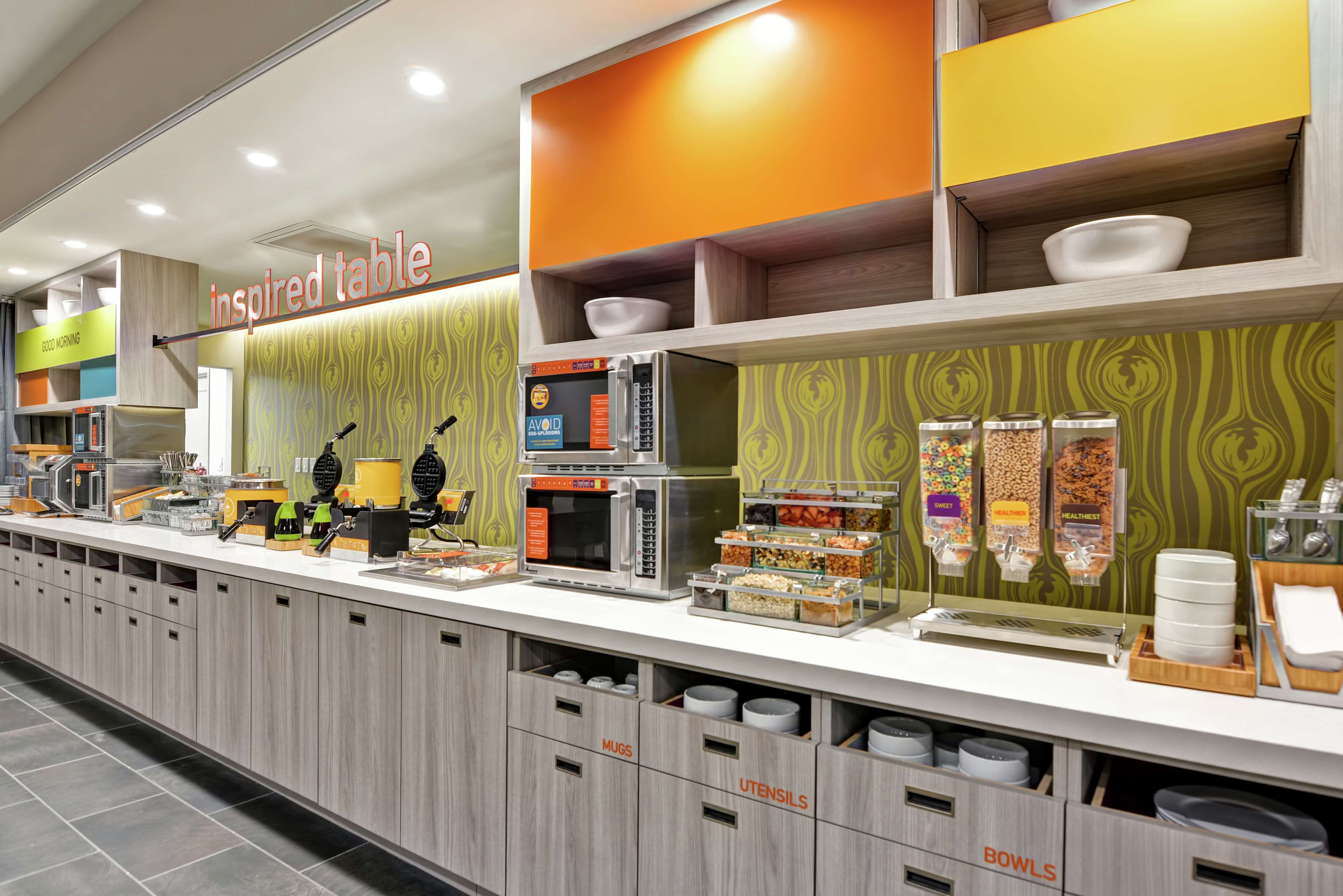 We offer free breakfast each morning, including favorites such as Belgian waffles, artisan breakfast sandwiches, fresh fruit, oatmeal and more. Fresh coffee and tea is always available, and you can grab snacks, beverages and sundries at our 24-hour Home2 MKTĀ®. Enjoy a dip in our outdoor pool, or stay active in our Spin2 Cycle fitness center.