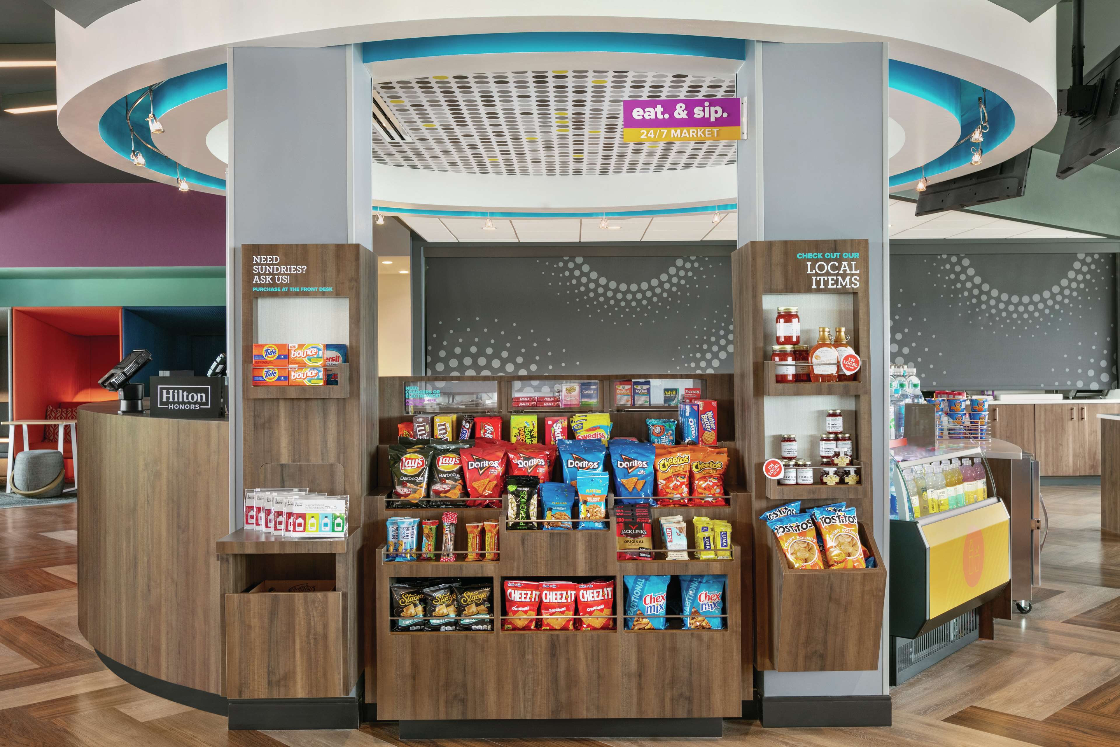Amp up your day with free, hot breakfast each morning, including healthy and indulgent choices from eggs and chicken sausage to fruit-filled waffle boats. Warm up with fresh LavAzza coffee, tea and hot chocolate, available 24/7 in our lobby. Want a snack? Stop by our lobby market for local, gourmet treats and single-serve beer and wine.