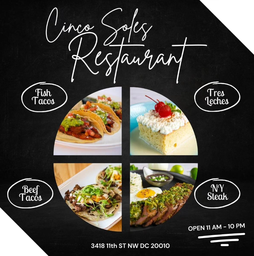 At Cinco Soles, we go beyond just the food to provide a truly immersive dining experience. Our taqueria and raw bar experiences allow you to savor the freshest seafood and meats in creative and unique ways. Pair your meal with one of our specialty drinks, such as our South American wine, cervezas, or margarita cocktails. We also have all the traditional Mexican food you crave from tacos to enchiladas with salads, appetizers, dessert, and a kids’ menu so the whole family can join the fiesta. Whether you're looking to spend a romantic evening out or celebrate a special occasion with friends, our unique ambiance and attentive service will make your visit a memorable one. Come dine with us at Cinco Soles and experience the best of Mexican cuisine and the best Bar experience right here in Washington, DC.