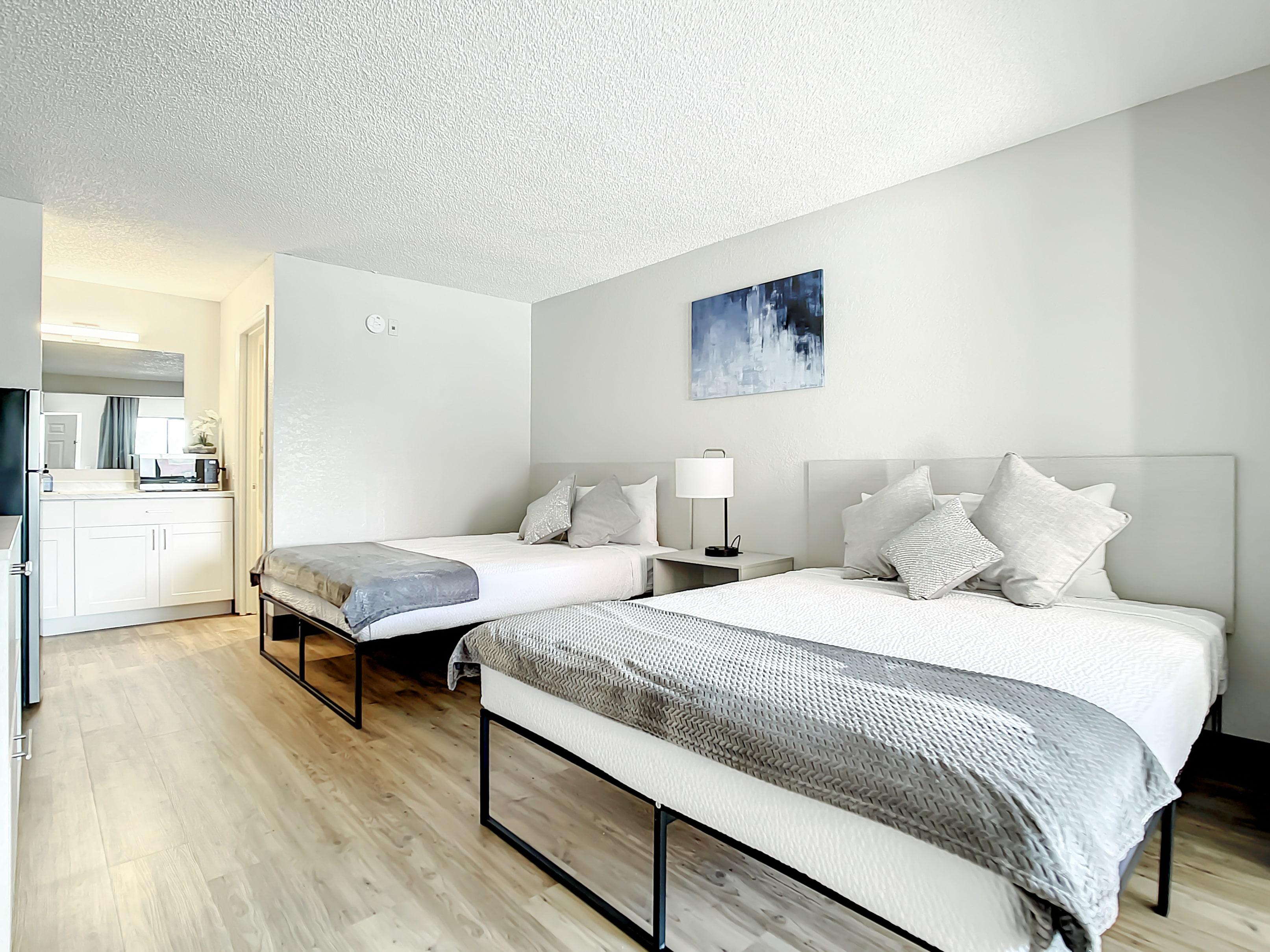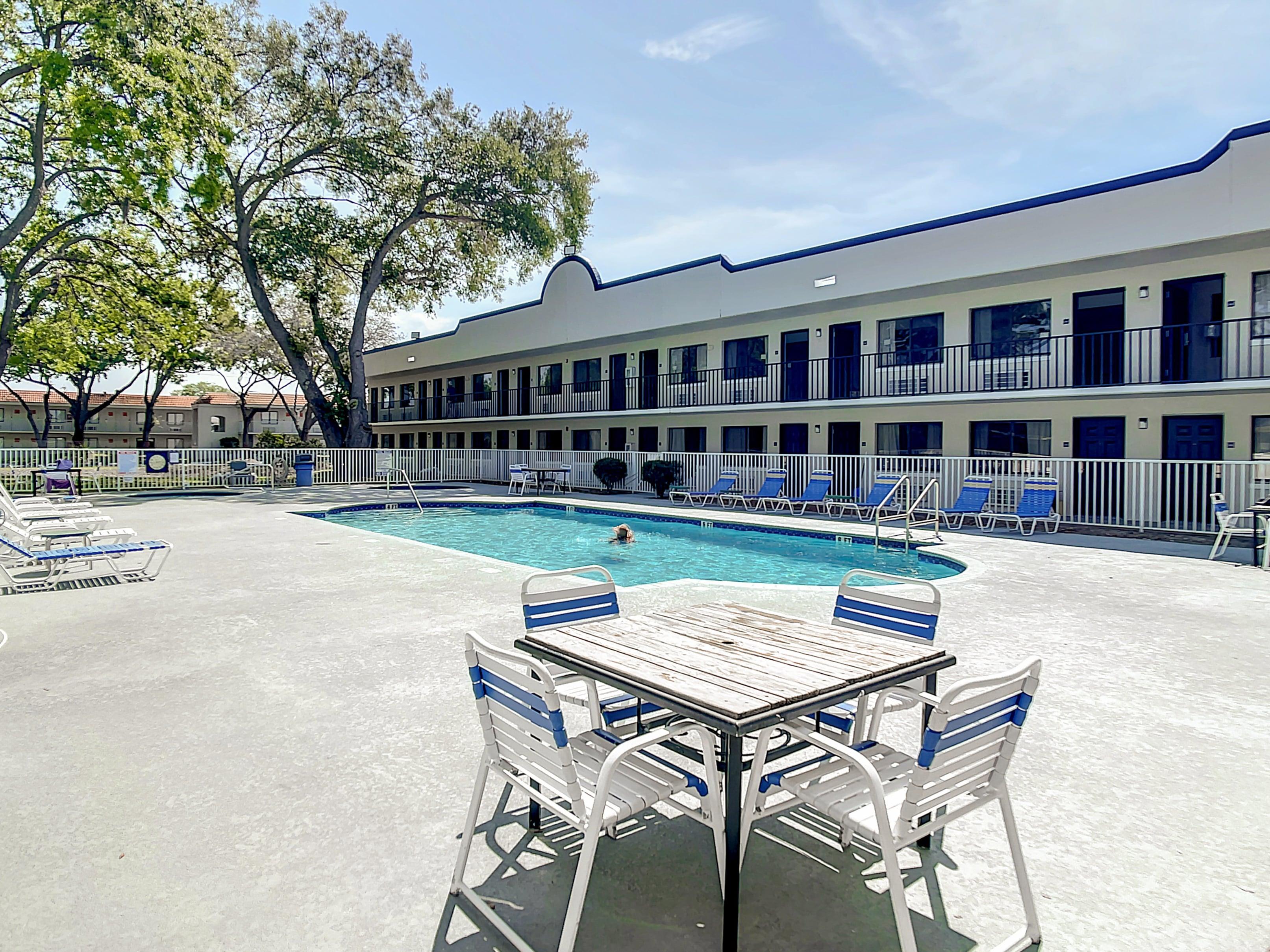 Take a refreshing dip in our swimming pool or unwind in the hot tub. Experience the warmth of home within our spacious and fully furnished units, including flat-screen TV, free Wifi, full-sized refrigerator, and air fryer microwave. With on-site laundry facilities and weekly housekeeping services available, we've got all your needs covered.