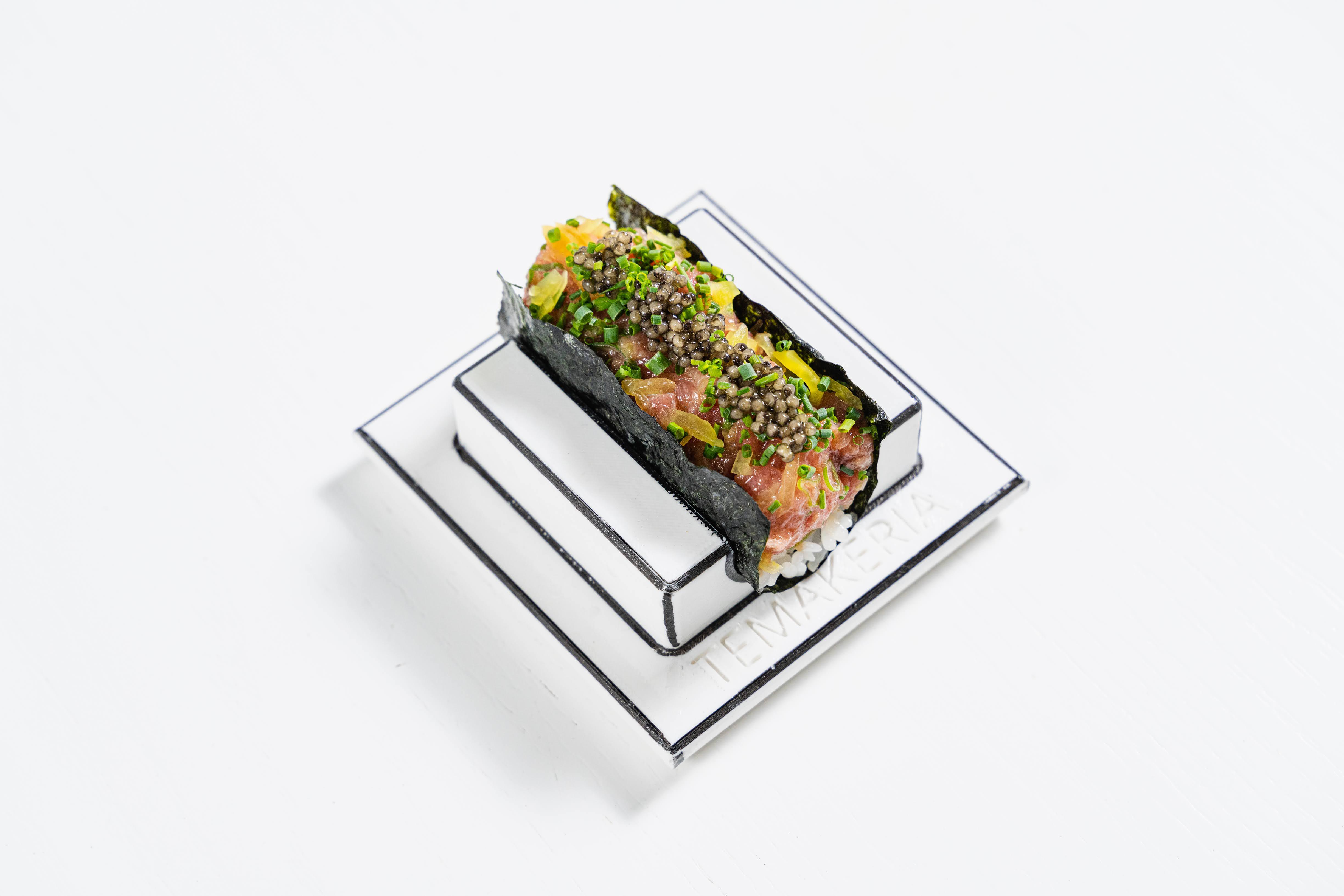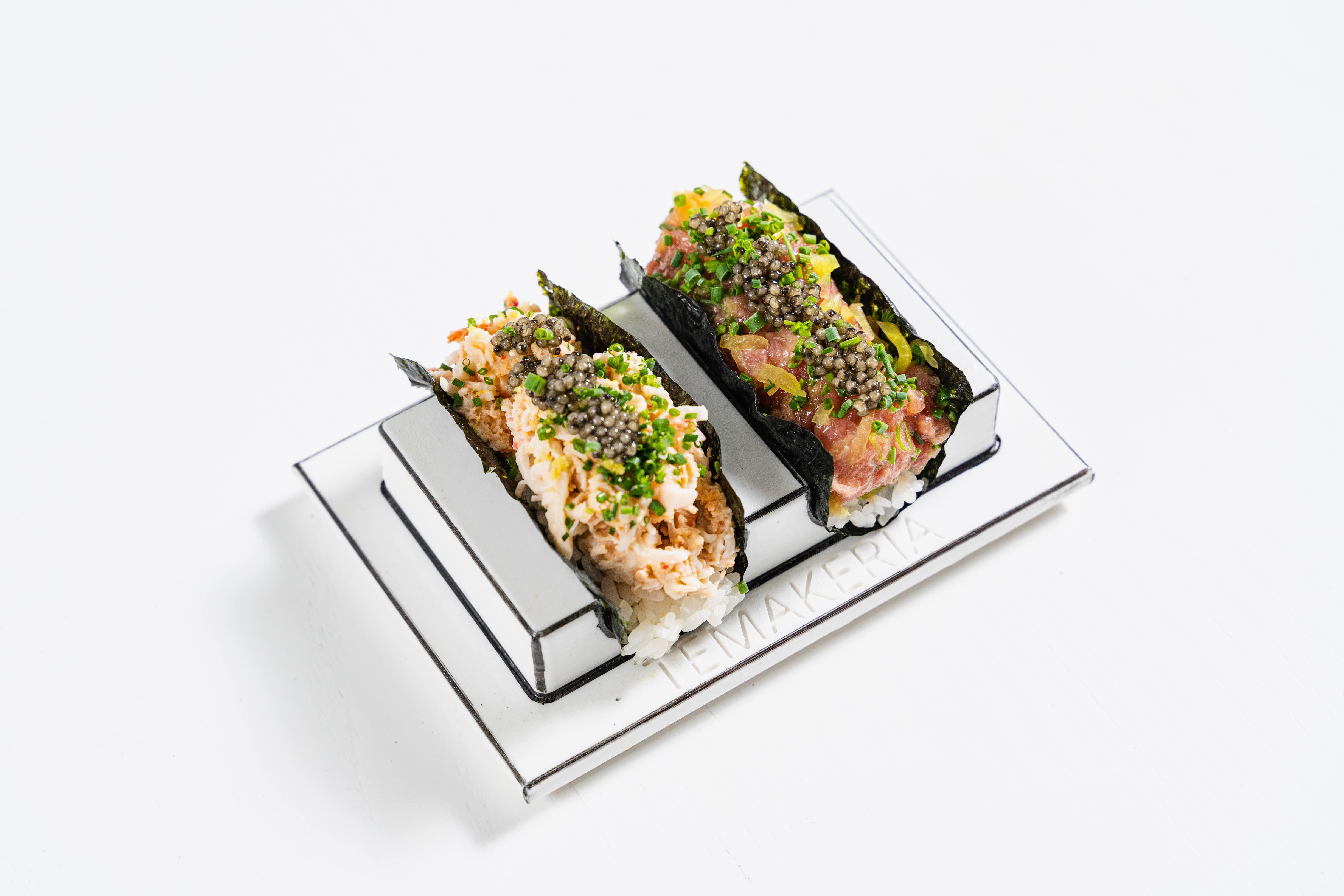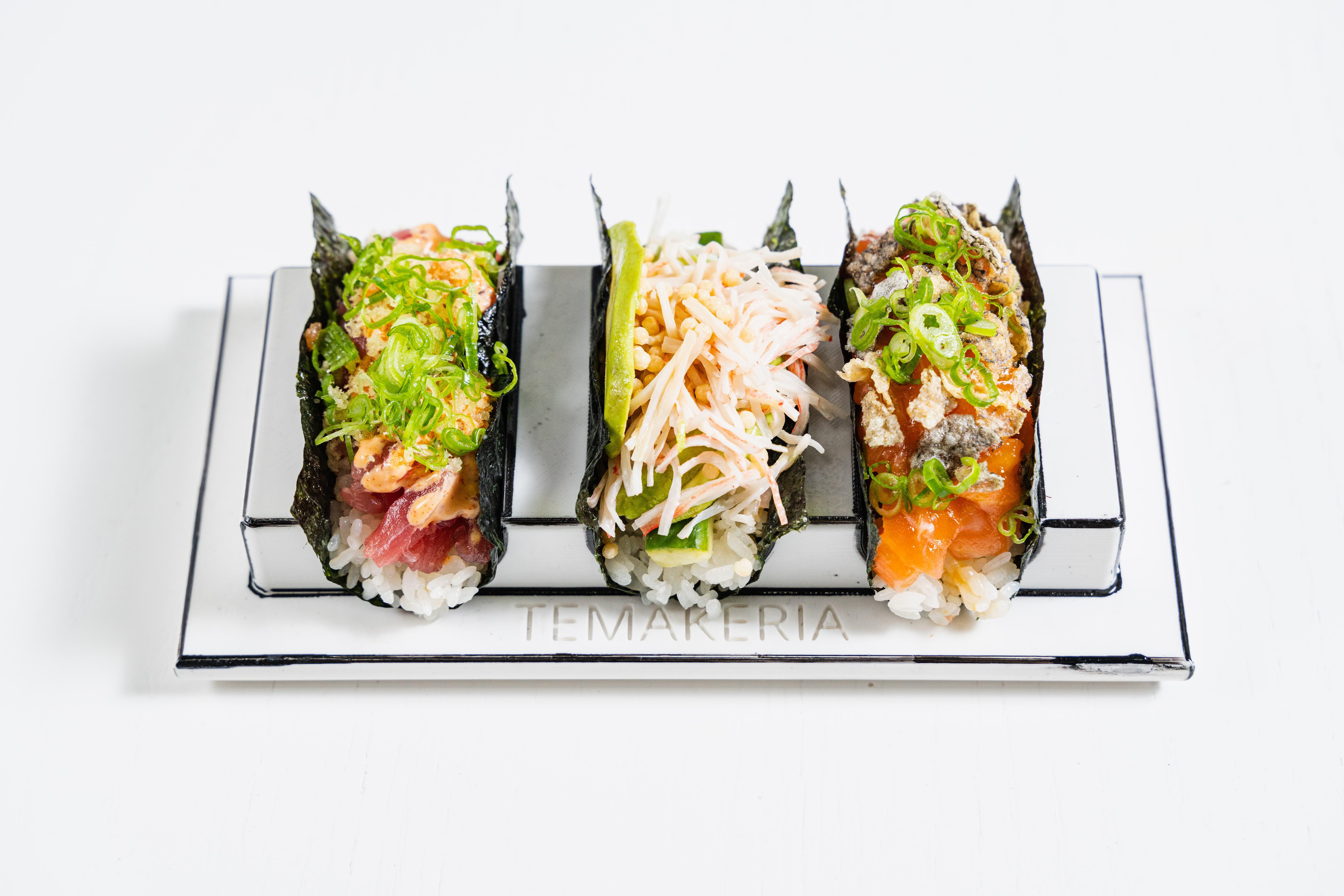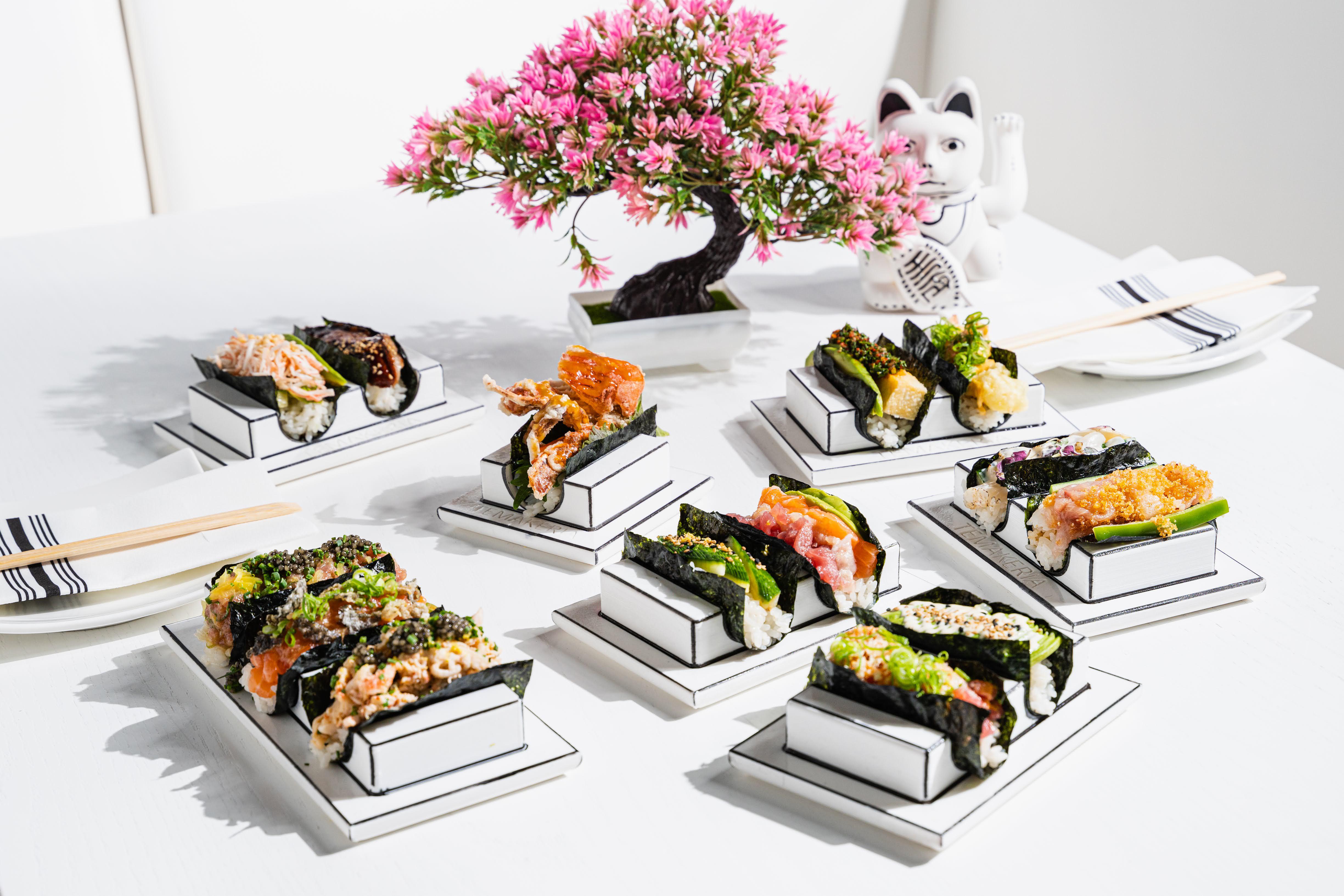 Temakeria is a new sushi and Japanese restaurant in West Dallas. As a Japanese temaki-style sushi spot, Temakeria offers a picturesque and sensory dining experience in our black-and-white "2D" designed space. We feature Japanese sushi, hand rolls, and sashimi served in 3D-printed vessels, along with vibrant cocktails. Dishes include lobster karage, poke nachos, gyoza, and a variety of hand rolls filled with toro, salmon, unagi, and softshell crab. Our restaurant caters to vegans too with vegetable hand rolls, vegan appetizers, and a unique matcha tofu crème brûlée dessert. Temakeria is open for dinner daily and offers lunch service on Fridays to Sundays. Make a reservation today to join us at the sushi bar or on the patio!