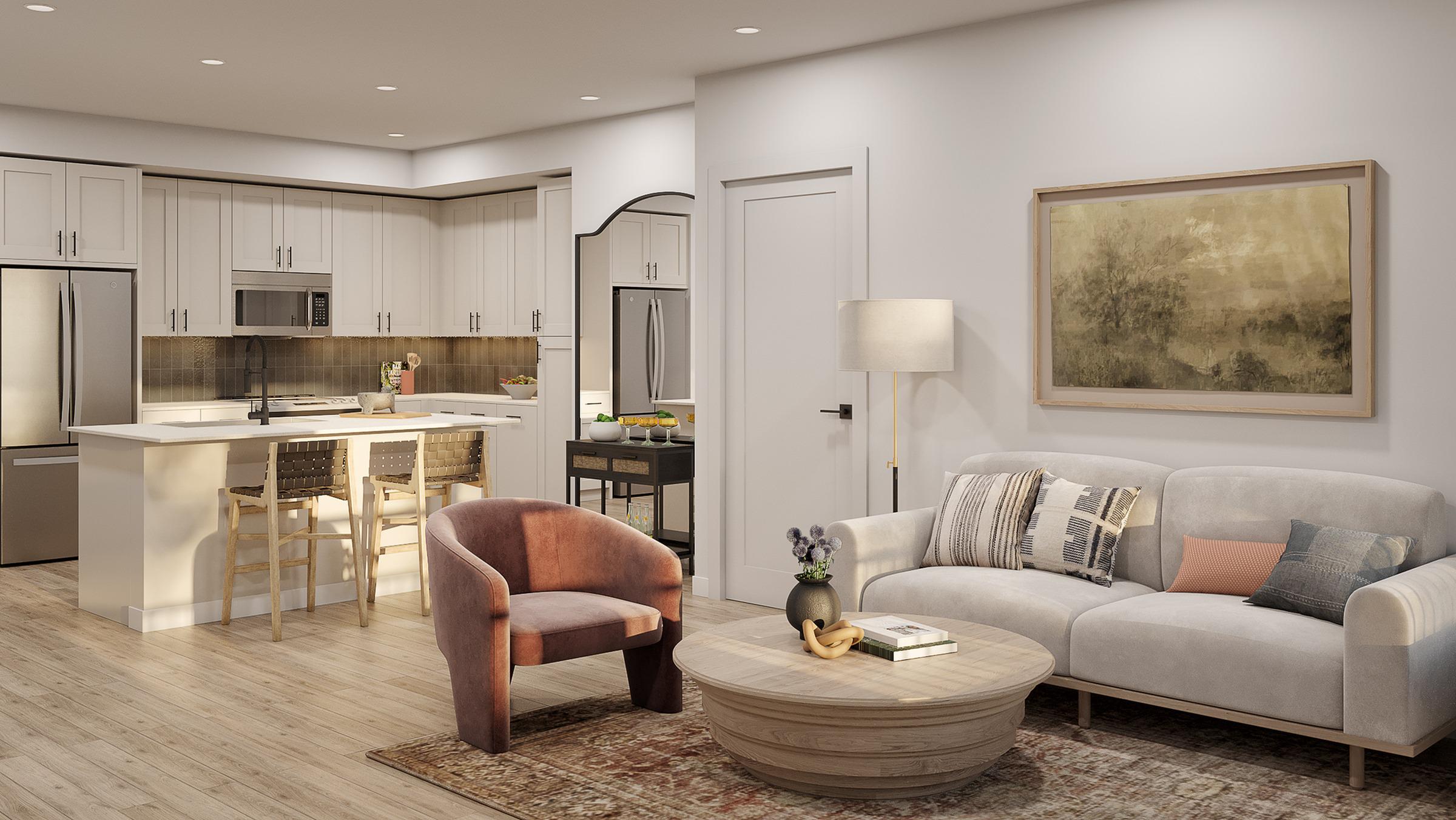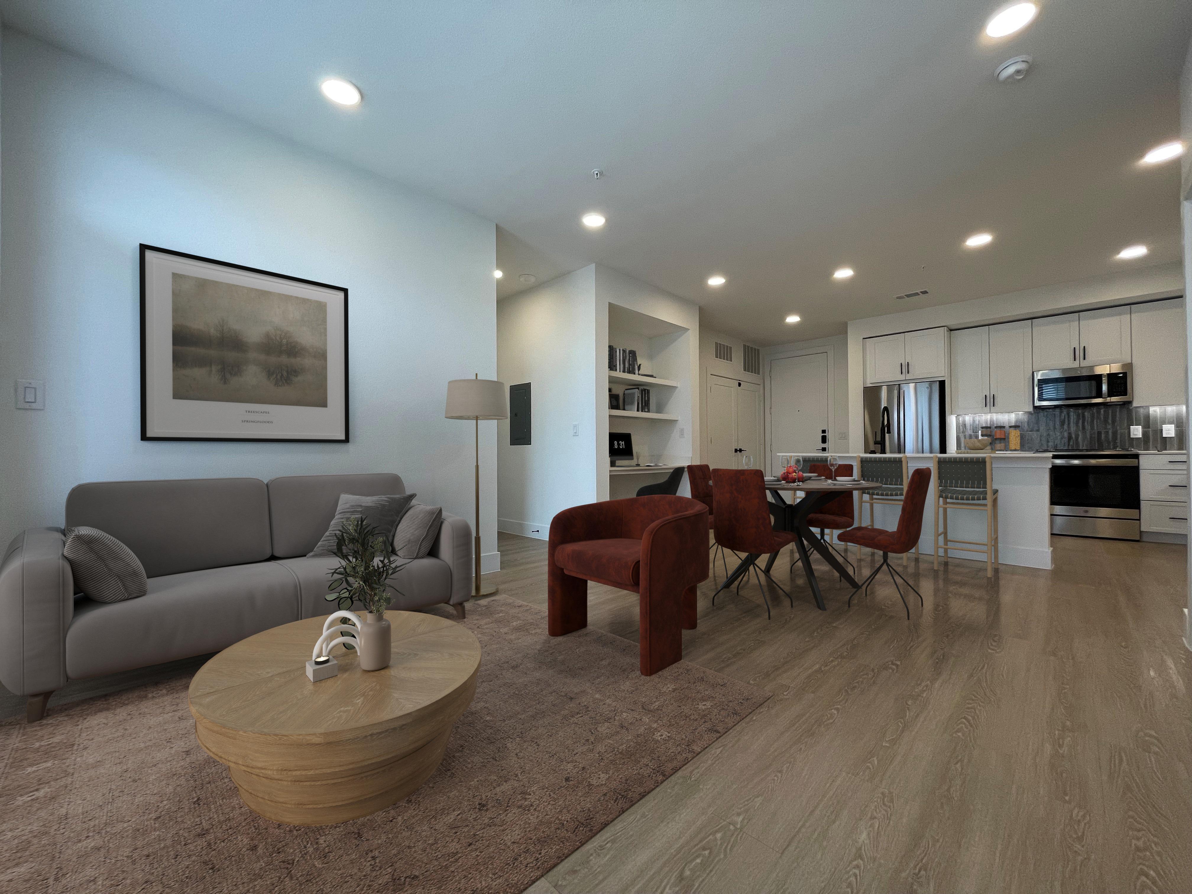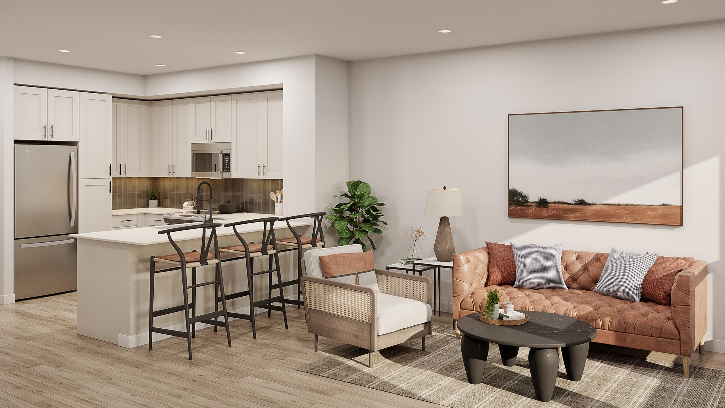 Our one-, two-, and three-bedroom floor plans feature open-concept layouts with a long list of modern and stylish features. The Chef-friendly kitchens include stainless steel appliances, quartz countertops, tile backsplashes and Shaker style European cabinetry. Spacious bedrooms include large closets, and every apartment home has a private patio or balcony, and a full-size washer and dryer for your convenience. Visit today and let us introduce you to your new home at Caroline Georgetown!