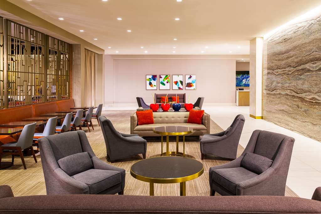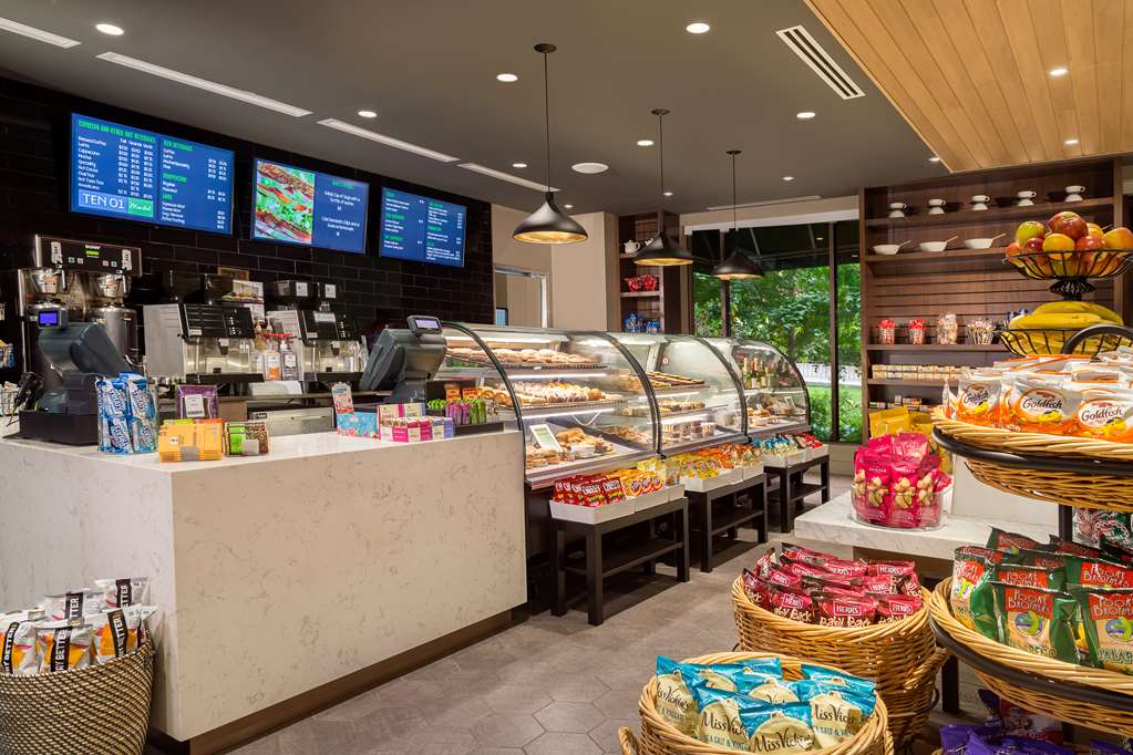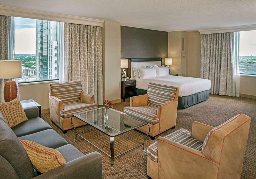 Spacious guest rooms offer scenic views of downtown and reflect a sophisticated urban finish. All 826 guest rooms include Serenity beds, an in-room refrigerator, a laptop safe, 50-inch high-definition televisions, a coffee maker, an iron/iron board, and complimentary in-room WiFi for all Hilton Honors Members. Other conveniences include UPS Business Office, a complimentary 24-hour fitness center, an indoor pool, and a sauna. Dine and enjoy a local craft beer at Ten01 Social, grab a quick bite from Ten01 Market, or stay in and our team will deliver your meal through Market On Demand.