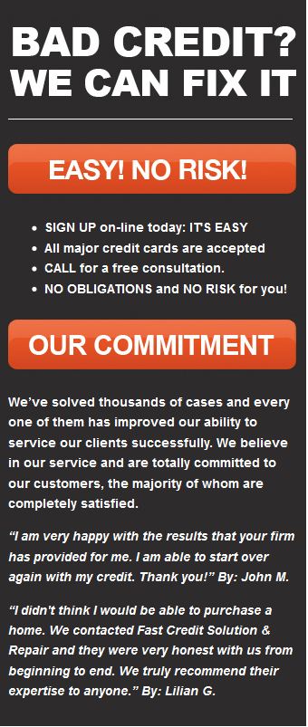 FAST CREDIT SOLUTIONS WAS WONDERFUL AND HELPFUL. I WAS IN A NIGHTMARE AND I AM JUST AM WAKING UP THANKS TO THEM. I HOPE TO NEVER NEED THEM AGAIN ,BUT IF I DO I WILL COME BACK TO FAST CREDIT SOLUTIONS.Fast solution for my debt!