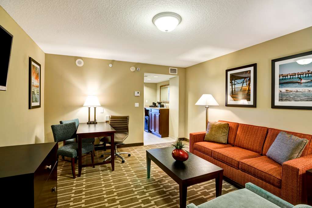 All suites feature a separate bedroom, living room to include sofa sleeper, and wet bar equipped with mini-fridge, microwave and coffee maker. Our suites come with your choice of one king bed or two full double beds.