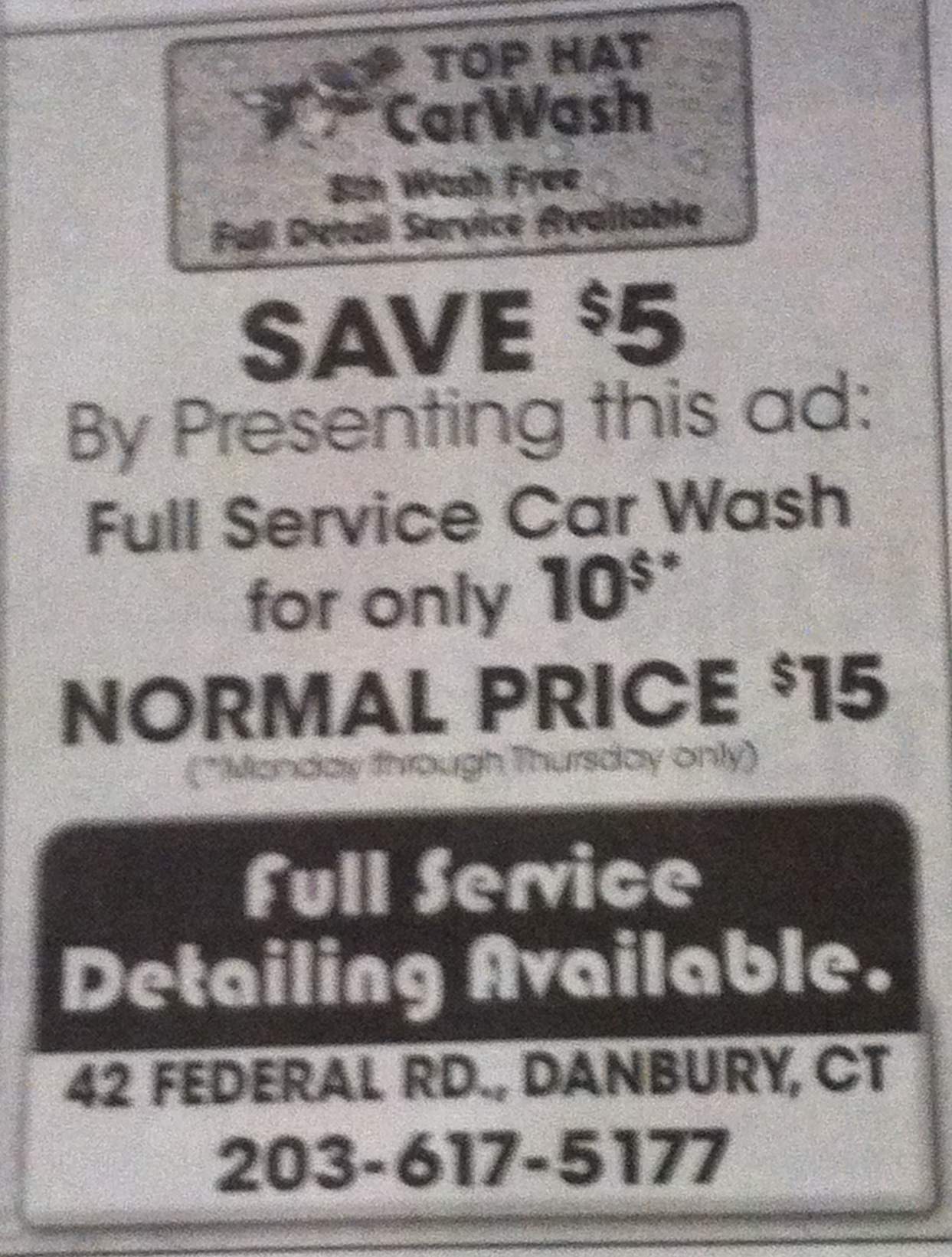 Full Service Car Wash located in Danbury CT Prices Range from $6 to $15 for wonderful services.