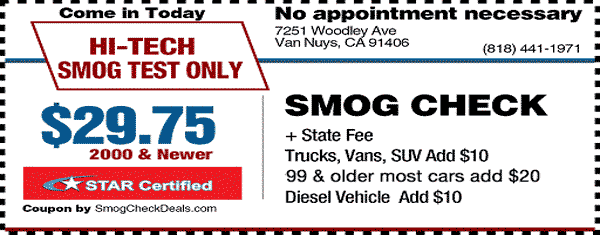 Van Nuys STAR station offers smog check, smog test for all vehicles. All DMV smog check, smog inspection, smog certification, smog testing, smog test only, STAR smog check, smog certification and smog check coupons