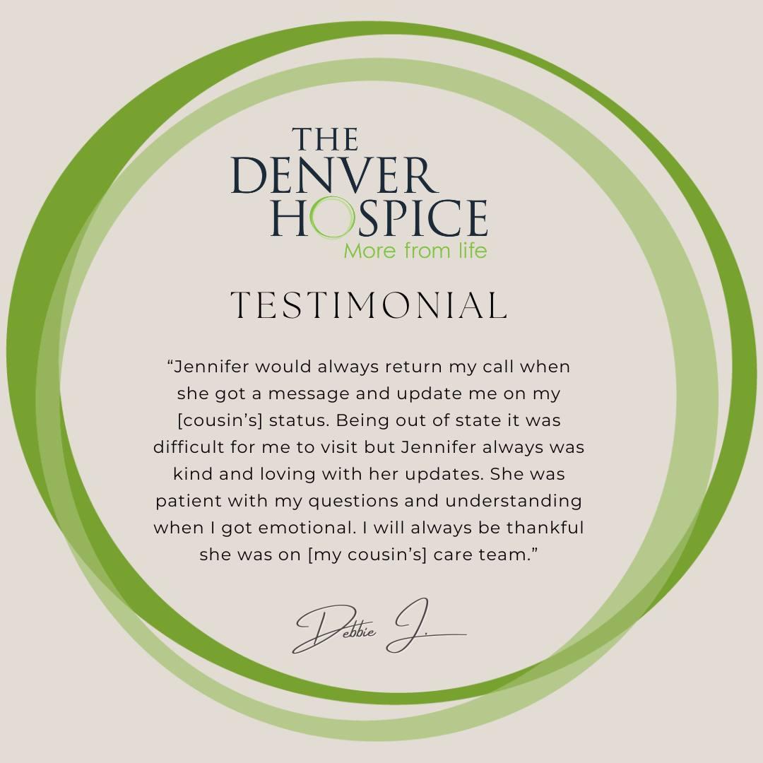 The Denver Hospice is the leading, largest, and most trusted not-for-profit provider of life-enhancing hospice and palliative care in Denver, Aurora, and surrounding counties. We offer more expertise, more resources, and a more complete continuum of compassionate care to patients facing life-limiting illnesses and end-of-life transitions.