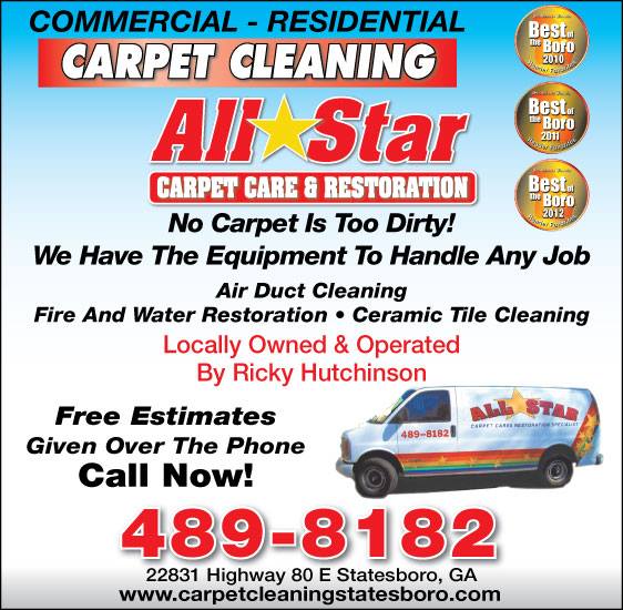 Whether it’s a tough stain or extensive water damage, All Star Carpet Care Restoration has the tools and experience to make your home or business clean again. Specializing in carpet cleaning in Statesboro, GA, this company is known for providing trustworthy, fast, and affordable assistance when it comes to getting rid of challenging messes.