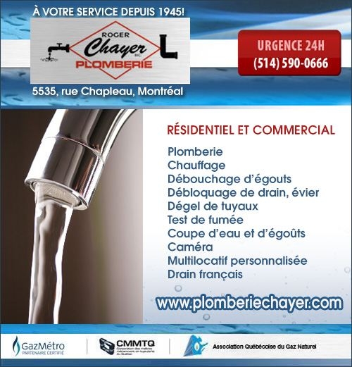 Faites appel aux spécialistes de Plomberie Roger Chayer inc. pour bénéficier de services de plomberie de qualité : installation, entretien ou réparation d’un appareil de chauffage, conception de votre nouvelle salle de bain ou réparation mineure de votre plomberie. Nous œuvrons auprès de clientèles résidentielles, multi-locatives et commerciales; n’hésitez pas à nous écrire ou à nous téléphoner.