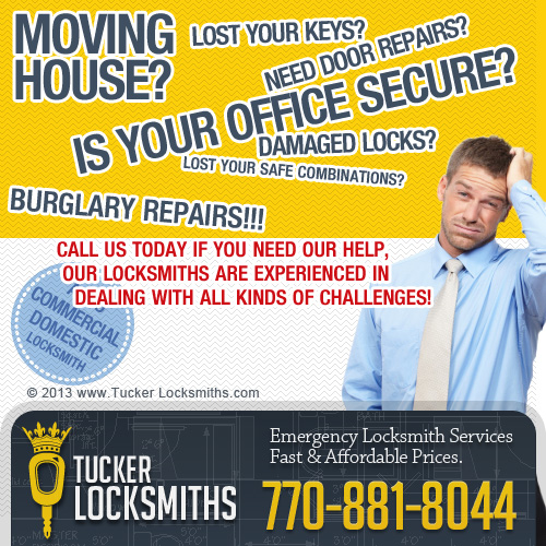 At Tucker Locksmith you will find certified locksmiths, top notch locksmith tools and outstanding service. The prices are reasonable too, just ask for a free estimate from our customer support representatives - 770-881-8044.