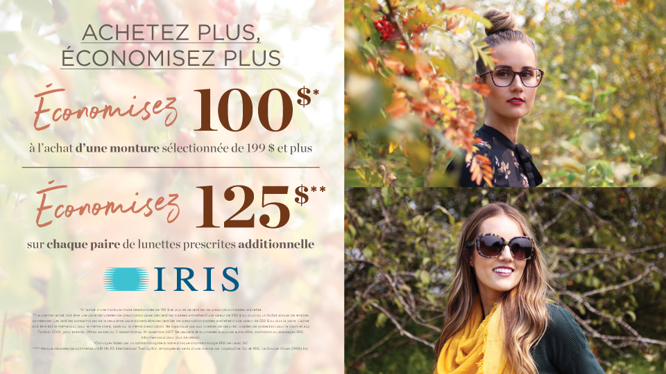 Grâce à son concept distinctif et à son engagement à offrir des produits et services de la plus haute qualité, IRIS a réussi à se différencier dans le domaine des soins visuels et de la lunetterie. IRIS propose une large sélection de lunettes de prescription, de lunettes de soleil et de verres de contact. Passez nous voir pour profiter des avantages vos assurances. Les examens de la vue des enfants et des personnes âgées de 65 ans et plus sont couverts par la RAMQ. Notre équipe est composée de Dr Jean-François Blouin, Optométriste, Dr André Gariépy, Optométriste, Dre Élisabeth Archambault, Optométriste, Dr Pierre Laroche, Optométriste.