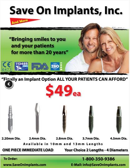 Save On Implants markets an extensive range of dental implants and prosthetic elements. The goal is to continue to provide the most technologically advanced products, to help dentists develop their practice and to provide their patients with the most up-to date treatment. Save On Implants houses an advanced production facility with state-of-the-art machinery allowing for the utmost accuracy, fast turnaround time, and fulfillment of all customers’ needs.