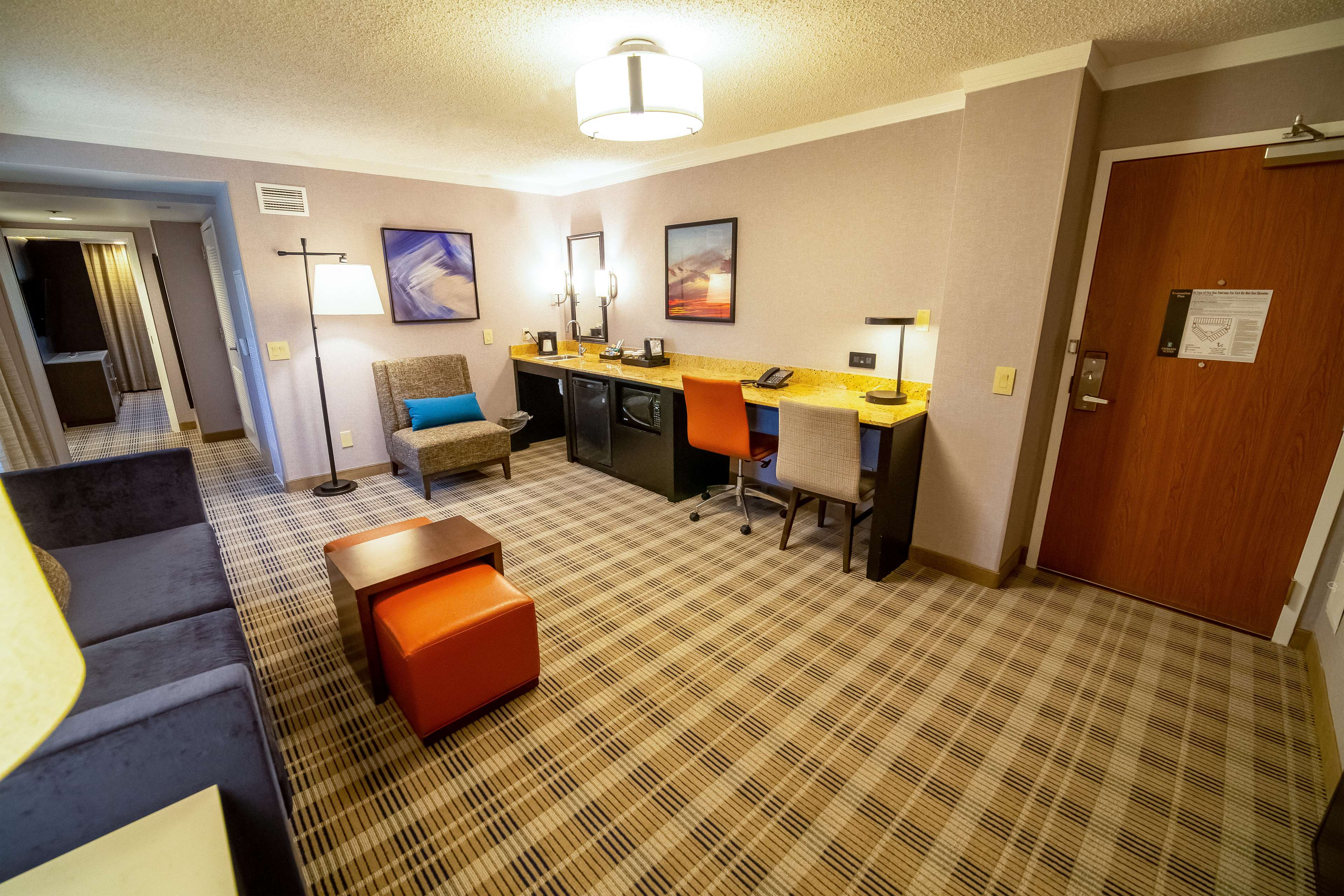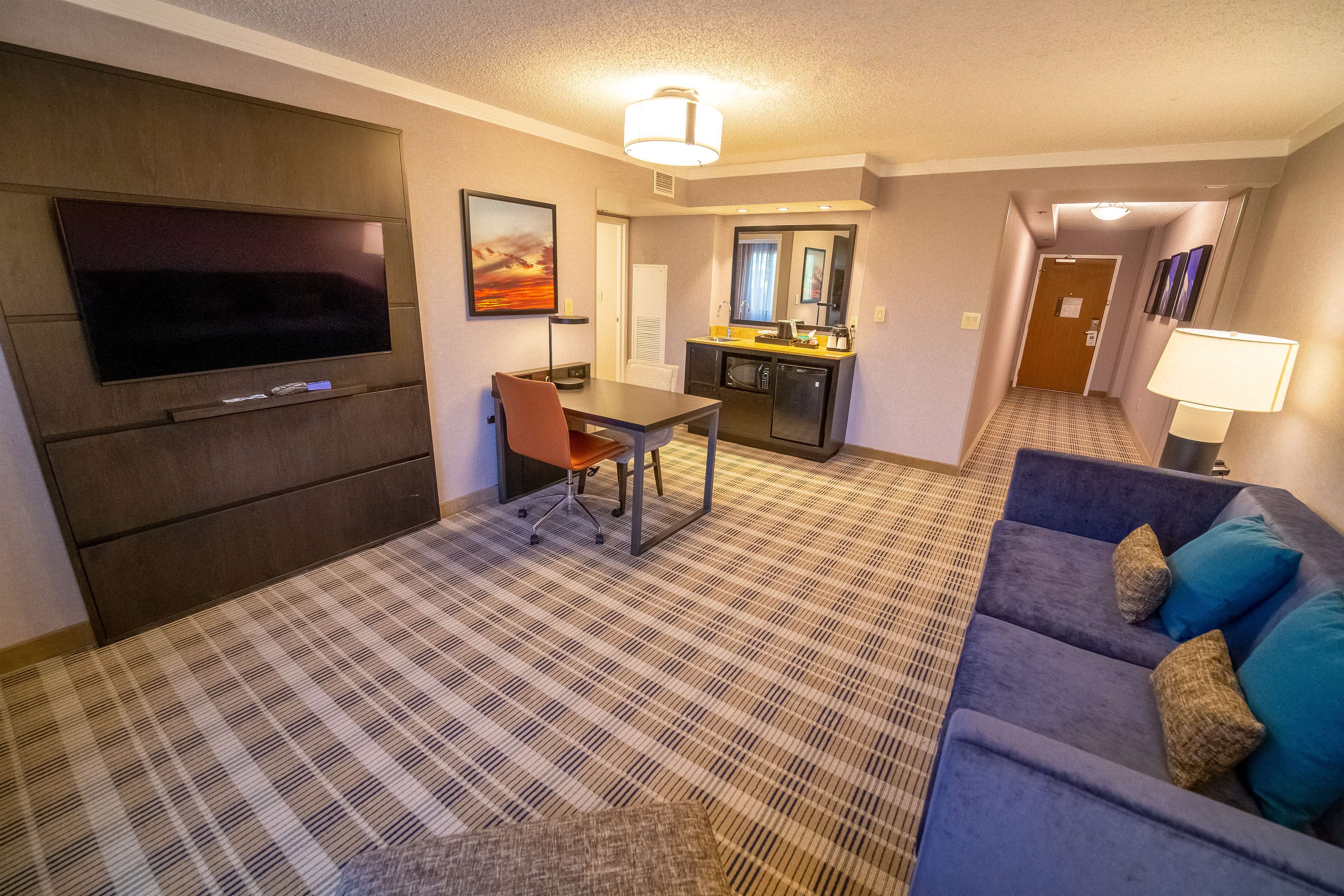 Located off I-435, the Embassy Suites Overland Park is a short five-minute drive from Corporate Woods business district, The T-Mobile headquarters, Oak Park Mall, Top Golf, and downtown Overland Park. The Royals Kauffman stadium and Arrowhead Stadium, and the Legends Shopping/KC Sporting Complex are all within a 20-minute drive. We have an indoor pool, hot tub, and state-of-the-art fitness center, Complimentary made-to-order breakfast and evening reception are included in your stay.