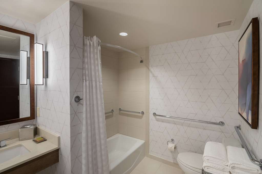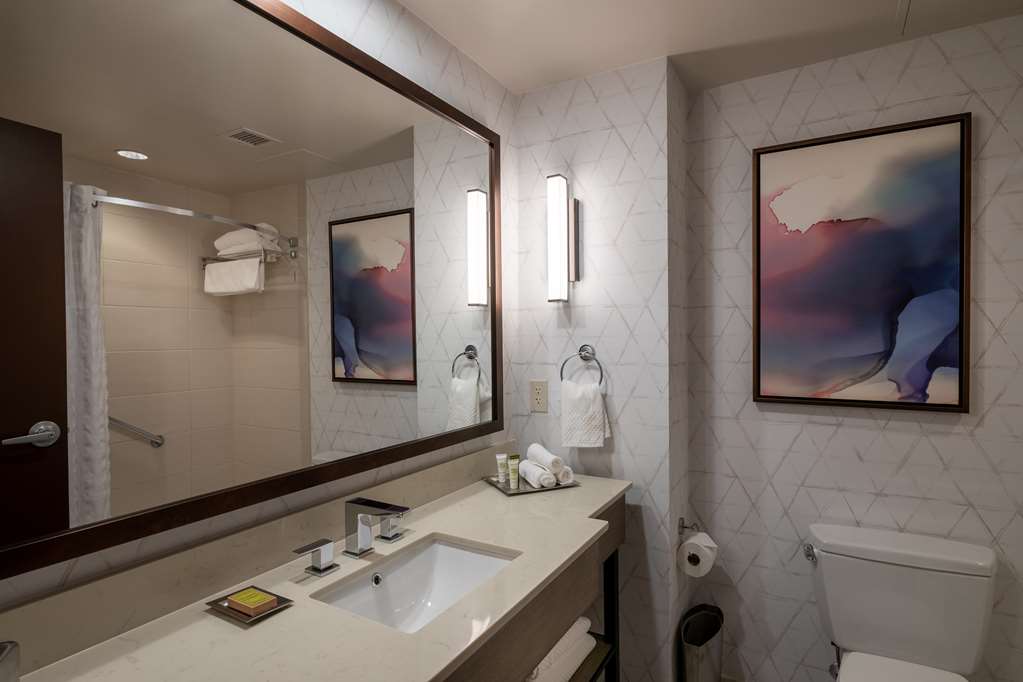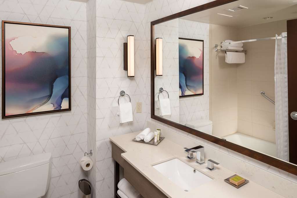 Minutes from Biltmore Estate, with easy access to downtown Asheville, Hilton Asheville Biltmore Park hotel is located in the heart of Biltmore Park Town Square–there's a lively shopping, dining and entertainment scene steps from the hotel. Enjoy complimentary internet access throughout the hotel as well as innovative cuisine at the hotel's Roux restaurant and bar. Our spacious Asheville, NC hotel rooms offer the modern amenities and magnificent views of the Blue Ridge Mountains. Each guest room offers a 37-inch TV, Hilton Alarm Clock Radio with MP3 connection, chair and ottoman, work desk, two-line phones with voice mail, in-room safe, refrigerator, iron/ironing board, ion hair dryer and an in-room coffee maker.