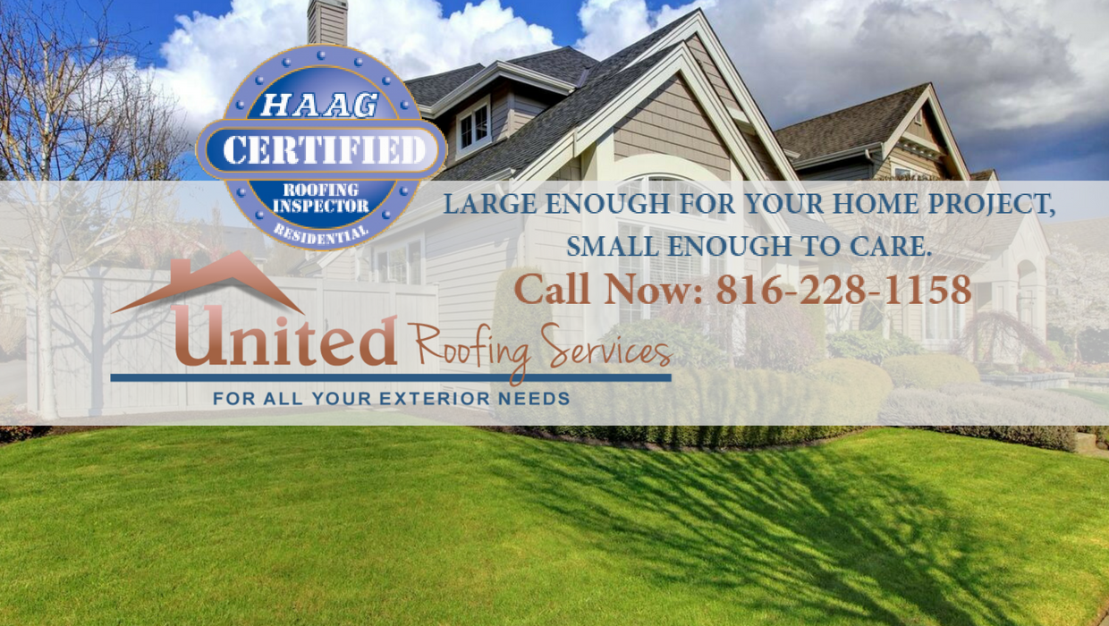 When you’re looking for a full service residential roofer in Kansas City, MO and Blue Springs, MO, give United Roofing Services a call. We are ready to get to work for you! We’ve been in the roofing industry for decades, and we have the experience and skills necessary to fix any problem you might be facing. From storm damage repair, to new roof and gutter installations, to re-roofs and total roof replacements — we do it all. We will even help you through the insurance claim process, and get the work done from start to finish.