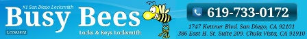Full Service Locksmith shop located in San Diego, CA with 24/7 mobile locksmith service. We specialize in Automotive, Residential, Commercial, and Motorcycle Locksmith services. We can make a key for your car on the spot with no need to tow to the Dealership. We are licensed, insured, family owned and operated. Busy Bees is the local locksmith that you can trust. Call or Email us now for a free quote.