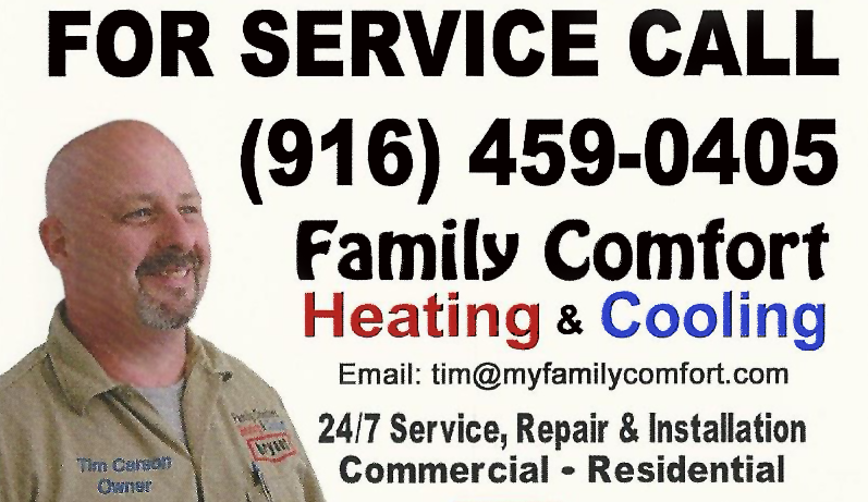 Just yesterday I found myself searching the local ads for a company to help us. I am 83 and on SSI, my disabled son, also on SSI, lives here with me and we barely scrape by. We had been having problems with our very old furnace. Three or more companies had already come out to look, and all of them told me the same thing… they wouldn’t repair the furnace, only replace it, which is too costly for us right now. They wouldn’t even get on the roof to check the flue pipes. The thought of being stuck without heat and having to run small space heaters that make our bills higher scared me. I opened the local ads again and found Family Comfort Heating & Cooling. Their name truly reflects what their values are… Family Comfort. Tim, the owner said he would be there to look in less than an hour. He showed up on time and was the first and only one who actually got on the roof and checked the whole system. After explaining our financial situation, Tim says “I’ll do it. I’ll put in a new furnace for you… for free”. It is one of the most helpful and thoughtful things anyone has done for us. I couldn’t help but cry. Now we will have lower bills, less insurance for the house and we will be warm. It is such a blessing. The next morning, Tim and his son came early and we had our complete, brand new furnace installed and warming the house in no time. It is truly wonderful and I can’t thank them enough for everything they have done for us. We have a new thermostat, carbon monoxide and smoke detectors and a lower premium on house insurance. I highly recommend this company to anyone who needs their heating and air conditioning systems looked at or replaced. They are such wonderful people. Thanks again Tim! June R. Loomis, CA