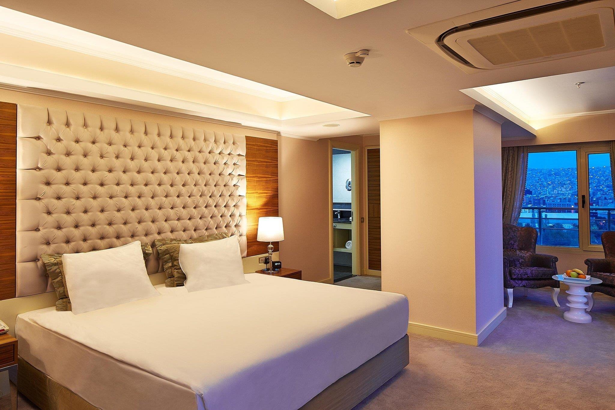 The hotel’s elegantly designed rooms provide a tranquil retreat amidst the city’s dynamic surroundings. Each room is equipped with modern amenities, including high-speed WiFi, flat-screen TVs, and a spacious work area, ensuring both comfort and productivity. Select accommodations offer breathtaking city views, enhancing the overall experience for those seeking a refined stay in one of the top hotels in Konak.