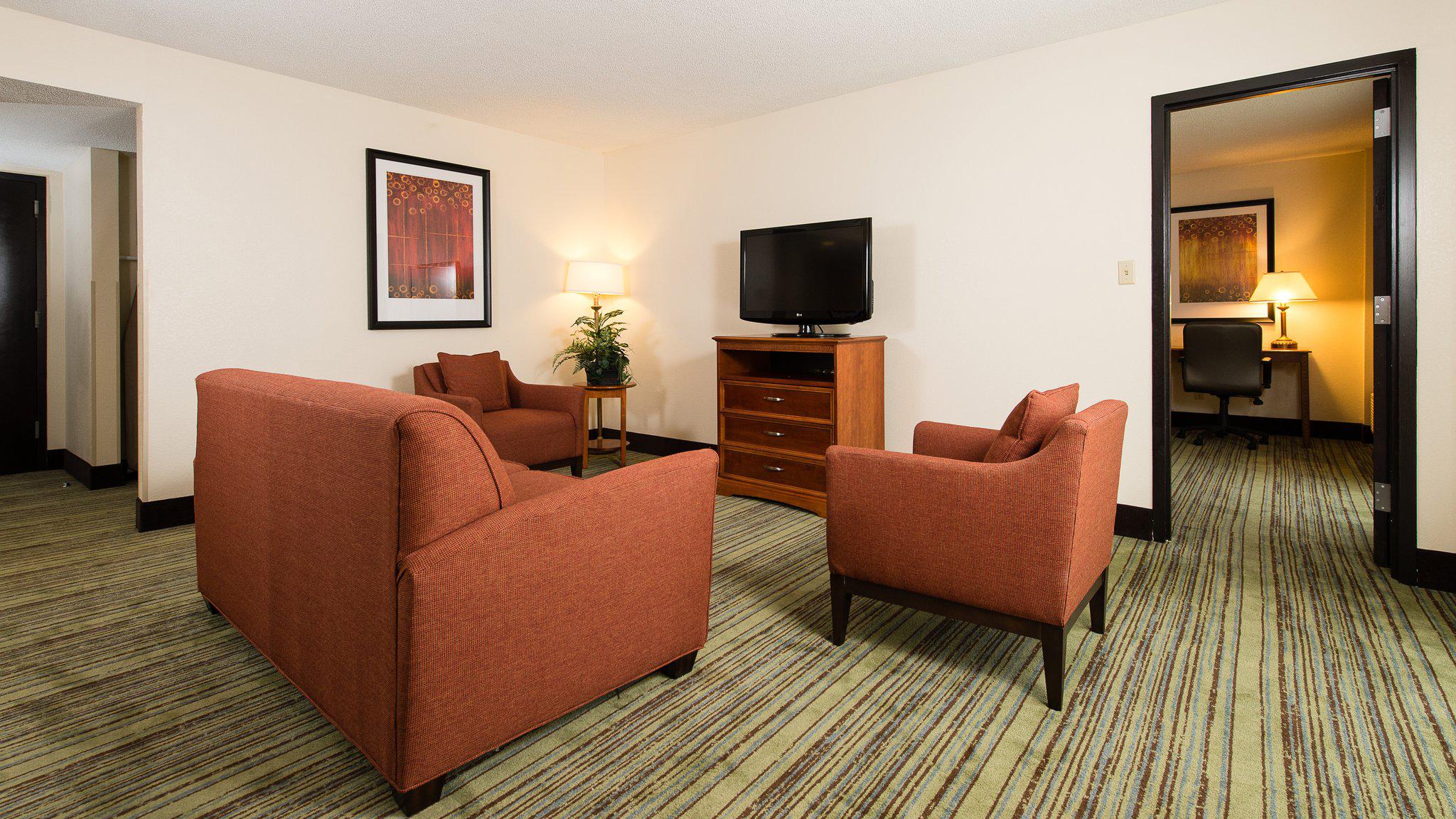 During your stay, we invite you to enjoy our spacious rooms, indoor pool and on-site restaurant, five nights a week. Stay connected with family, friends and co-workers with free Wi-Fi and 24-hour Business Center.